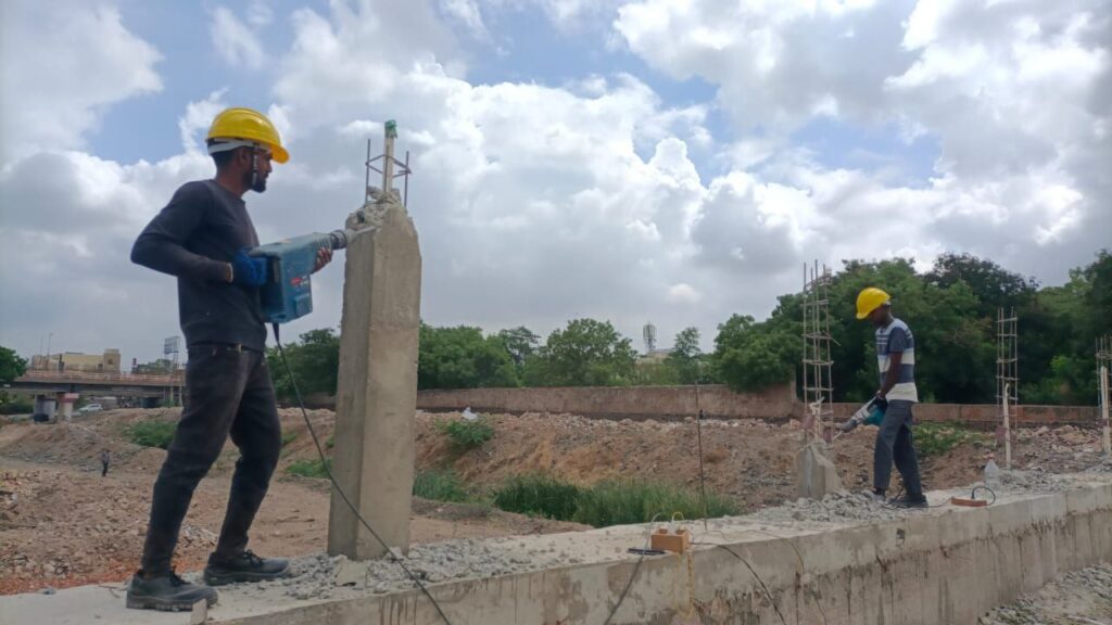 મોરબીના મચ્છુ નદીના પટ્ટમાં બીએપીએસ સ્વામિનારાયણ મંદિરના વહીવટદારો દ્વારા ગેરકાયદેસર બાંધકામ કરવા મામલે અગાઉ મોરબી પાલિકા દ્વારા નદીના પટમાં થયેલ ગેરકાયદેસર બાંધકામ બે દિવસમાં સંસ્થાના ખર્ચે દુર કરવાની કામગીરી શરૂ કરવા સુચના આપવામાં આવેલ હતી તેમ છતાં પણ બાંધકામ દૂર કરવામાં ન આવતા તંત્રએ ફરીથી બીએપીએસ સ્વામિનારાયણ મંદિરના વહીવટકર્તા ભરતભાઈ ભગવાનજીભાઈ બોપલીયા સહિતના 12 વહીવટ કર્તાને નદીમાં કરેલા બાંધકામ હટાવવા નોટિસ ફટકારવામાં આવતા જ સંસ્થાએ આજથી નદીના પટ્ટમાં બાંધેલી દિવાલના બીમ તોડવાનું શરૂ કરાયું છે.