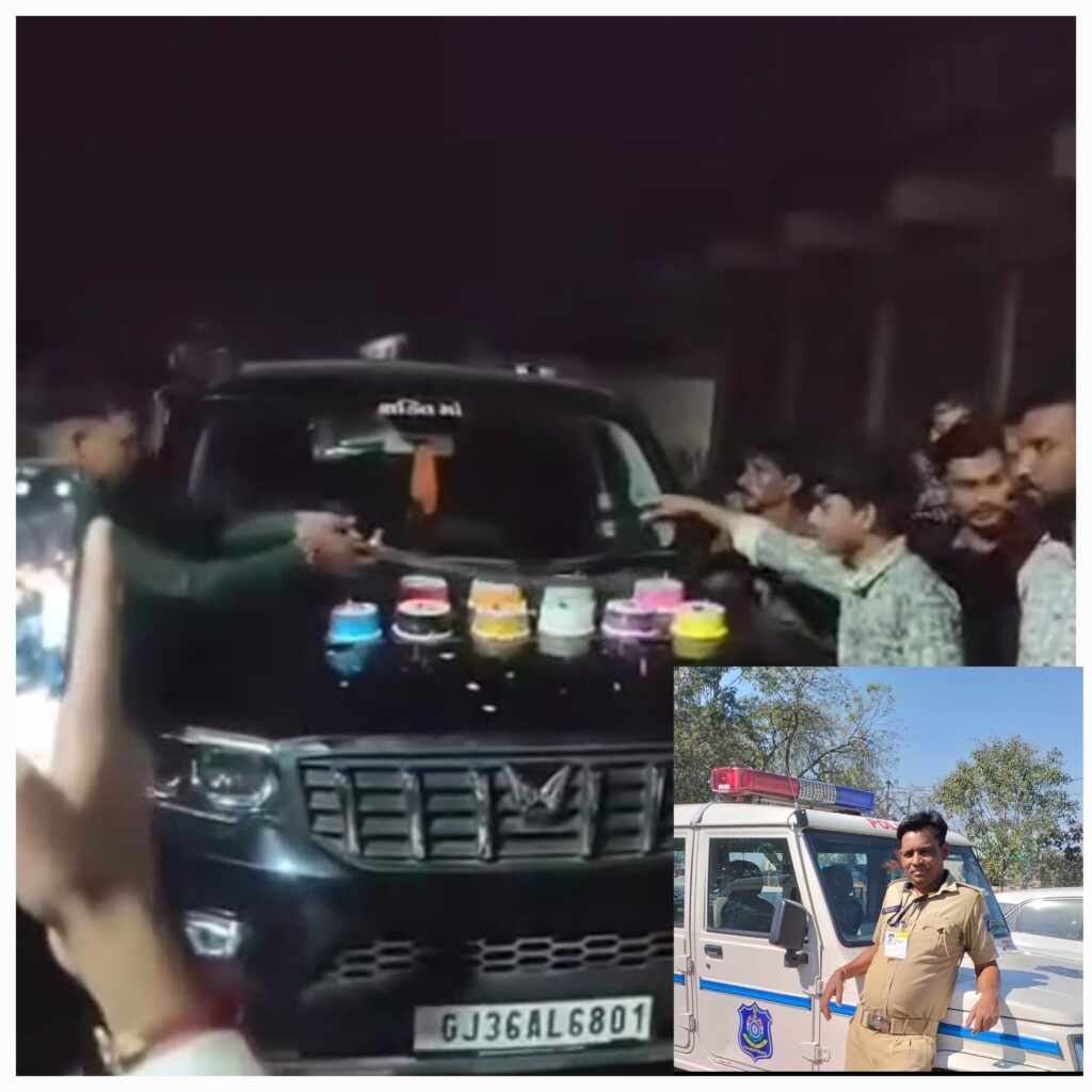 મોરબી તાલુકાના ઉંચી માંડલ અને વાંકડા ગામની સીમમાં ચોકડી નજીક આરોપી હરેશ પોપટ સોલંકી નામના જીઆરડીમાં નોકરી કરતા શખ્સે કાયદો હાથમાં લઈ સ્કોર્પિયો કારના બોનેટ ઉપર કેક તેમજ અન્ય ફોટોગ્રાફ રાખી તલવાર વડે કેક કાપતો હોય તેવો વીડિયો ઇન્સ્ટાગ્રામ આઈડી ઉપર અપલોડ કર્યા બાદ આ વીડિયો વાયરલ થતા જાહેરનામા ભંગ તેમજ બીએનએસ કાયદાની અલગ અલગ કલમો મુજબ આ કૃત્ય આચરી લોકોમાં ભય ફેલાય તેવું કૃત્ય કરવા સબબ મોરબી તાલુકા પોલીસે ગુન્હો નોંધી તપાસ શરૂ કરી છે.
