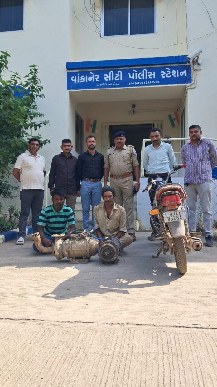 મોરબી : વાંકાનેરના ચંદ્રપુર ગામે નદીવાળી સીમથી ઓળખાતી સીમની વાડીમાથી બે ૫-હોર્ષ પાવરની ઇલેક્ટ્રીક મોટરો(ઓપનવેલો)નો અનડીટેક્ટ ચોરી ગણતરીની કલાકોમા ભેદ ઉકેલી નાખીને વાંકાનેર સીટી પોલીસે બે આરોપીઓને ઝડપી લીધા હતા.