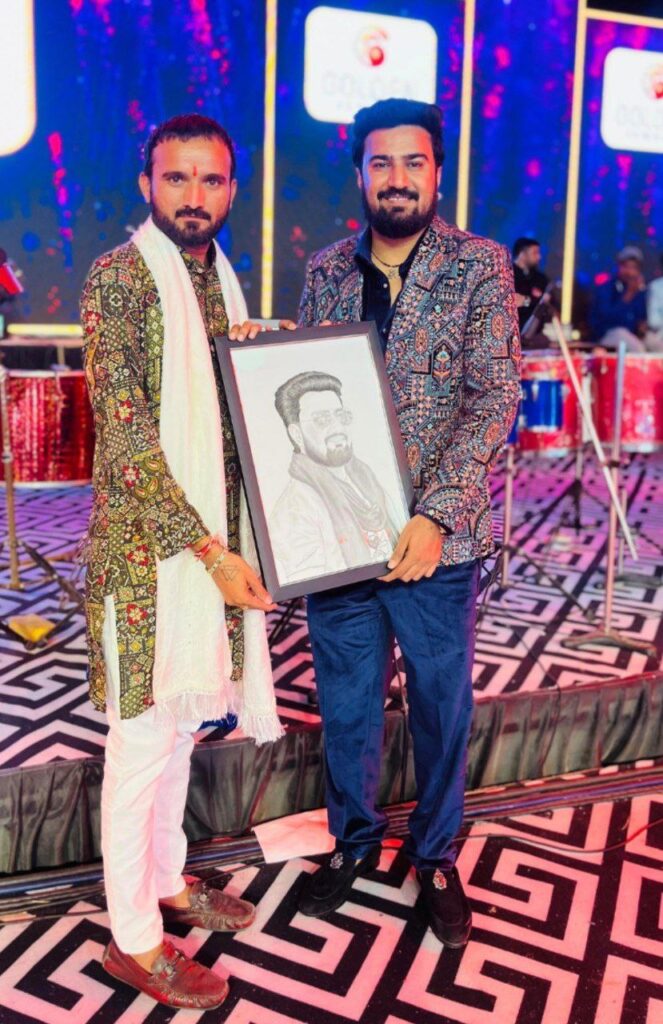 મોરબી : મોરબીના મહેન્દ્રનગર ગામે રહેતા અને મોરબી માળિયા વિધાનસભા ઇન્ચાર્જ અલ્પેશ ઓડિયા નામનો યુવા કલાકાર ચિત્રકલામાં નિપુણ છે. તેમણે અનેક રંગબેરંગી ચિત્રો દોરીને સૌને મંત્ર મુગ્ધ કરી દીધા છે. આ યુવા કલાકારે તાજેતરમાં ગુજરાતી ગાયકી ક્ષેત્રે ખૂબ મોટું નામ ધરાવતા સાગરદાન ગઢવીને આબેહૂબ રેખા ચિત્ર બનાવ્યું હતું. દરમિયાન સાગરદાન ગઢવી જ્યારે મોરબી પાટીદાર નવરાત્રી મહોત્સવમાં આવ્યા ત્યારે અલ્પેશ ઓડિયાએ બનાવેલું રેખાચિત્ર સાગરદાન ગઢવીને અર્પણ કરતા તેઓ ભારે પ્રભાવિત થઈને જાહેર મંચ ઉપરથી મોરબીના યુવા કલાકારની કલાને બિરદાવી હતી.