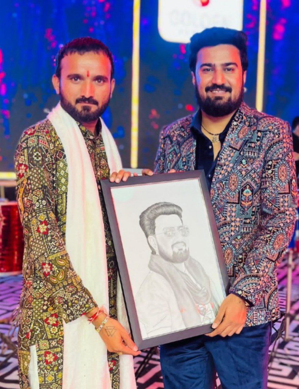 મોરબી : મોરબીના મહેન્દ્રનગર ગામે રહેતા અને મોરબી માળિયા વિધાનસભા ઇન્ચાર્જ અલ્પેશ ઓડિયા નામનો યુવા કલાકાર ચિત્રકલામાં નિપુણ છે. તેમણે અનેક રંગબેરંગી ચિત્રો દોરીને સૌને મંત્ર મુગ્ધ કરી દીધા છે. આ યુવા કલાકારે તાજેતરમાં ગુજરાતી ગાયકી ક્ષેત્રે ખૂબ મોટું નામ ધરાવતા સાગરદાન ગઢવીને આબેહૂબ રેખા ચિત્ર બનાવ્યું હતું. દરમિયાન સાગરદાન ગઢવી જ્યારે મોરબી પાટીદાર નવરાત્રી મહોત્સવમાં આવ્યા ત્યારે અલ્પેશ ઓડિયાએ બનાવેલું રેખાચિત્ર સાગરદાન ગઢવીને અર્પણ કરતા તેઓ ભારે પ્રભાવિત થઈને જાહેર મંચ ઉપરથી મોરબીના યુવા કલાકારની કલાને બિરદાવી હતી.