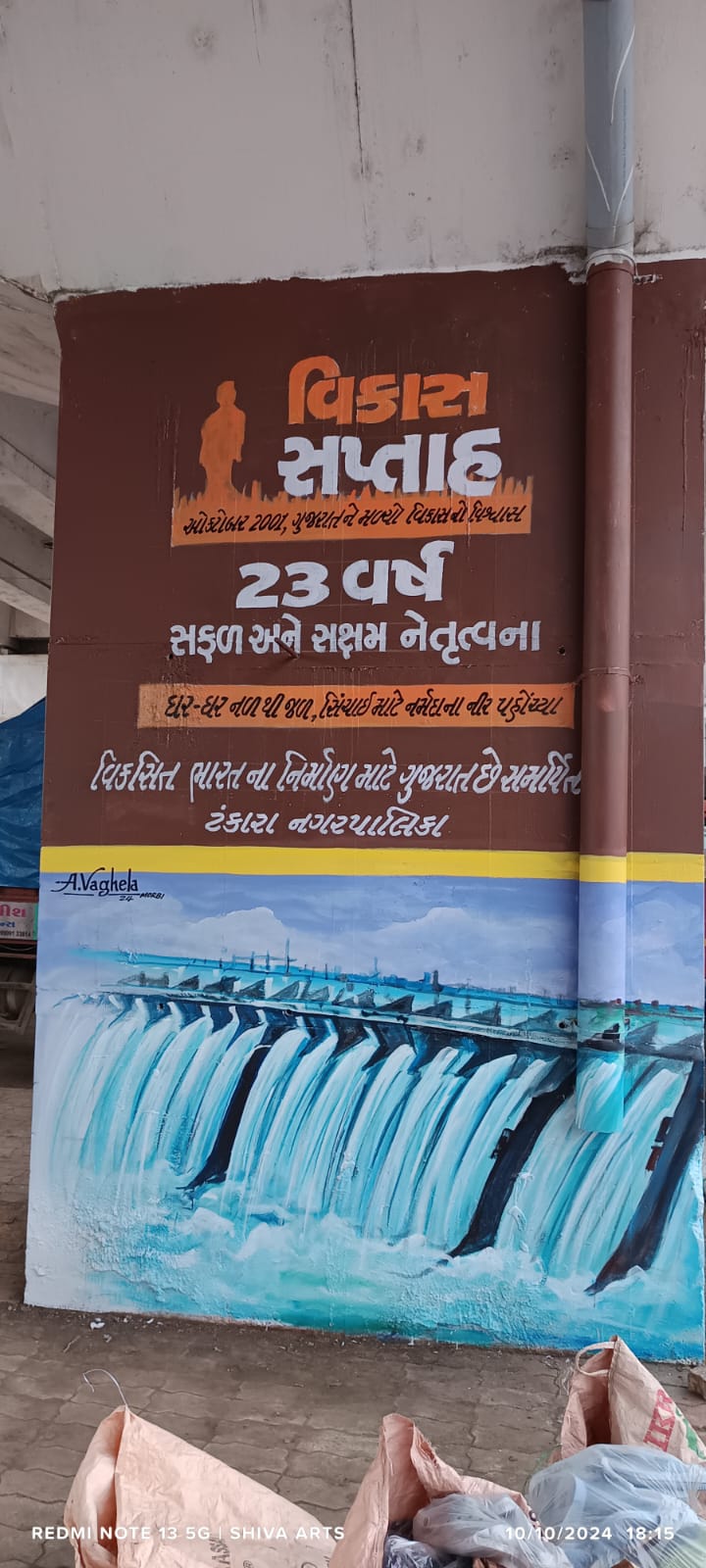 વિકાસ સપ્તાહની ઉજવણીના ભાગરૂપે મોરબી જિલ્લામાં ઠેર-ઠેર અનેકવિધ કાર્યક્રમ યોજાઇ રહ્યા છે. છેલ્લા ૨૩ વર્ષમાં ગુજરાત રાજ્યએ વિકાસના માર્ગે જે ઊંચાઈઓ હાંસલ કરી છે તે વિકાસ યાત્રાને પ્રદર્શિત કરતા ભીંત ચિત્રો પણ અનેક સ્થળે બનાવવામાં આવી રહ્યા છે. ત્યારે ટંકારા નગરપાલિકા અને વાંકાનેર નગરપાલિકા દ્વારા બ્રિજ અને જાહેર સ્થળો સહિતની જગ્યાઓ પર રીન્યુએબલ એનર્જી કેપિટલ, સરદાર સરોવર ડેમ અને નર્મદા નહેર નેટવર્ક, જલ સે જલ સહિત ગુજરાતની વિકાસ ગાથાને અંકિત કરી ભીંત ચિત્રો બનાવવામાં આવ્યા છે.