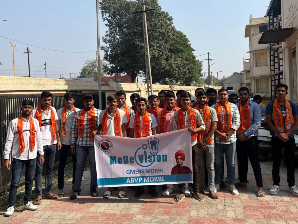 મોરબી : અખિલ ભારતીય વિદ્યાર્થી પરિષદ મોરબી દ્વારા પાટણની ધારપુર મેડિકલ કોલેજમાં બનેલી રેગિંગની ઘટનાને લઈ GMERS મેડિકલ કોલેજ મોરબી ખાતે સિગ્નેચર કેમ્પેનનું આયોજન કરવામાં આવ્યું હતું. .મહત્વનું છે કે, અખિલ ભારતીય વિદ્યાર્થી પરિષદએ 9 જુલાઈ 1949થી વિધાર્થી હિત અને રાષ્ટ્રહિતના કાર્યો કરતું વિશ્વનું સૌથી મોટું વિધાર્થીઓનું સંગઠન છે. ત્યારે વિદ્યાર્થીઓના હિતમાં પાટણની ધારપુર મેડિકલ કોલેજમાં બનેલી રેગિંગની ઘટના વિરૂદ્ધ GMERS મેડિકલ કોલેજ મોરબી ખાતે “સિગ્નેચર કેમ્પેન”નું અયોજન કરવામાં આવ્યું હતું.