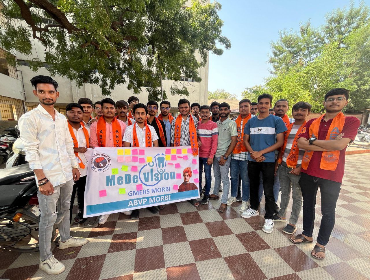 મોરબી : અખિલ ભારતીય વિદ્યાર્થી પરિષદ મોરબી દ્વારા પાટણની ધારપુર મેડિકલ કોલેજમાં બનેલી રેગિંગની ઘટનાને લઈ GMERS મેડિકલ કોલેજ મોરબી ખાતે સિગ્નેચર કેમ્પેનનું આયોજન કરવામાં આવ્યું હતું. .મહત્વનું છે કે, અખિલ ભારતીય વિદ્યાર્થી પરિષદએ 9 જુલાઈ 1949થી વિધાર્થી હિત અને રાષ્ટ્રહિતના કાર્યો કરતું વિશ્વનું સૌથી મોટું વિધાર્થીઓનું સંગઠન છે. ત્યારે વિદ્યાર્થીઓના હિતમાં પાટણની ધારપુર મેડિકલ કોલેજમાં બનેલી રેગિંગની ઘટના વિરૂદ્ધ GMERS મેડિકલ કોલેજ મોરબી ખાતે “સિગ્નેચર કેમ્પેન”નું અયોજન કરવામાં આવ્યું હતું.