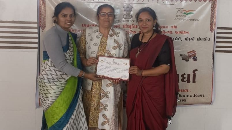 ટંકારા : નાલંદા વિદ્યાલય ખાતે યોજાયેલા તાલુકા કક્ષાના કલા મહાકુંભમાં હરબટીયાળી પ્રા.શાળાના શિક્ષિકા સાંચલા ગીતાબેન 21 થી 59 ની વયજૂથમાં લોકગીત સ્પર્ધામાં ભાગ લઈ પ્રથમ ક્રમે વિજેતા જાહેર થયા છે. ઉપરાંત 6 થી 14 વર્ષની વય જૂથમાં શાળાની વિદ્યાર્થીનીઓનો પ્રાચીન રાસ પણ પ્રથમ ક્રમે વિજેતા જાહેર થયો છે. હવે તેઓ જિલ્લા કક્ષાના કલા મહાકુંભમાં ભાગ લેશે.