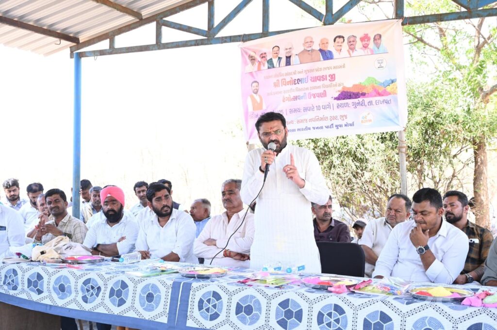 કચ્છના સાંસદ અને પ્રદેશ ભાજપા ના મહામંત્રી વિનોદભાઇ ચાવડા આજે સરહદ ના સેઢે આવેલ લખપત તાલુકાનાં ગુનેરી ગામે નાના ભુલકા, સામાજીક અને રાજકીય સાથીઓ સ્નેહીજનો, શુભેચ્છકો સાથે અબીલ ગુલાલ ઉડાવી આનંદોત્સવ મનાવ્યો હતો. નાની બાળાઓ, નાના ભુલકાઓ ને શૈક્ષણિક કીટ વિતરણ કરી રંગ ઉડાવી આનંદ ની પળો ના પ્રત્યક્ષ સાક્ષી બન્યા હતા. રંગોત્સ્વમાં યુવાનો, મહિલાઓ, બાળકો સૌએ ભગવાન પ્રત્યેની આસ્થા અને વિશ્વાસ વ્યક્ત કર્યો હતો.