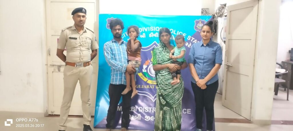 મોરબીની ત્રાજપર ચોકડીથી ગુમ થયેલ બાળકનું માતાપિતા સાથે મિલન કરાવતી બી ડીવીઝન પોલીસ