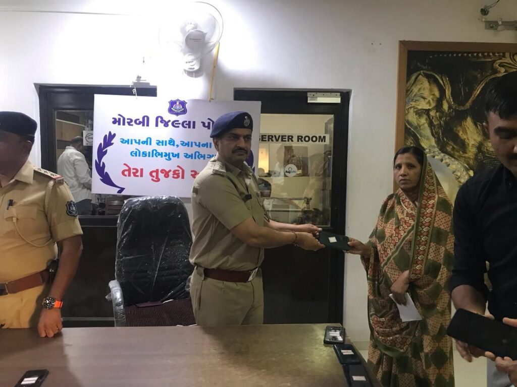મોરબી જીલ્લા પોલીસ અધિક્ષકશ્રી રાહુલ ત્રિપાઠી સાહેબ નાઓએ પ્રજા કલ્યાણ તથા પ્રજા ઉપયોગી કાર્યવાહી કરવા સુચના કરેલ હોય તેમજ નાયબ પોલીસ અધિક્ષકશ્રી પી.એ.ઝાલા સાહેબના માર્ગદર્શન હેઠળ અમો પોલીસ ઇન્સપેક્ટર આર.એસ.પટેલ મોરબી સીટી એ ડીવી. પો.સ્ટે. ના સુપરવિઝન હેઠળ મોરબી સીટી એ ડીવી. પો.સ્ટે.ના અરજદારોના ખોવાયેલ/ચોરાયેલ મોબાઇલ શોધી કાઢવા અત્રેના સ્ટાફને સુચના કરેલ હોય જે અનુસંધાને મોરબી સીટી એ ડીવી પો.સ્ટે.સર્વેલન્સ સ્ટાફના અનાર્મ એ.એસ.આઈ રાજદીપસિંહ રાણા નાઓએ “CEIR પોર્ટલનો ઉપયોગ કરી “CEIR”માં એંટ્રી કરી સતત મોનીટરીંગ રાખી ટેકનીકલ વર્ક આઉટ કરી અત્રેના સર્વેલન્સ સ્ટાફે જહેમત ઉઠાવી નીચે મુજબ ના મોબાઇલ નંગ. 41 કી.રૂ. 8,37,047/- ના શોધી પબ્લીકને પરત આપી સુરક્ષા સાથે સેવાનું ઉત્તરદાયિત્વ નિભાવી, પોલીસ પ્રજાની મિત્ર છે એ સુત્ર મોરબી સીટી એ ડીવીજન પોલીસ એ સાર્થક કરેલ છે.