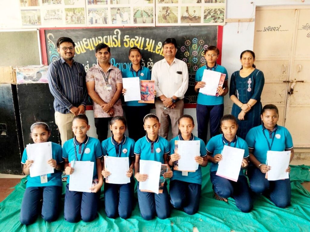 શાળાને આ સિદ્ધિ અપાવવા બદલ તમામ બાળાઓ તેમજ વર્ષ દરમ્યાન ખુબજ મહેનત કરાવનાર શિક્ષકો જયેશભાઈ અગ્રાવત, દયાળજી બાવરવા, ચાંદનીબેન સાંણજા, અશ્વિનભાઈ ભુવા વગેરેને પ્રિન્સિપાલ દિનેશભાઈ વડસોલાએ ધન્યવાદ આપી બાળાઓનું શૈક્ષણિક સાહિત્ય અર્પણ કરી સન્માન કરાયું હતું.