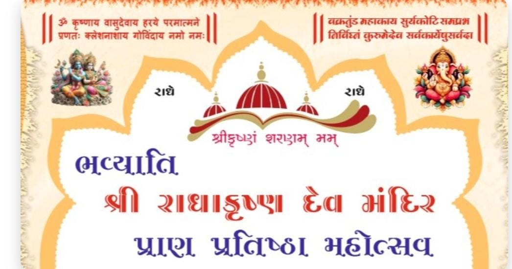 મોરબી : મોરબીના મહેન્દ્રનગર ખાતે આવેલા ક્રાંતિજ્યોત પાર્ક ખાતે આજે તારીખ 12 મે થી 14 મે સુધી ત્રિ દિવસીય ભવ્યાતિભવ્ય રાધાકૃષ્ણ દેવ મંદિરનો પ્રાણ પ્રતિષ્ઠા મહોત્સવ યોજાશે.