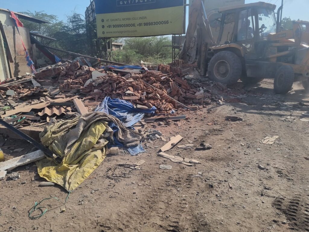 મોરબીના ત્રાજપર ચોકડી પાસે જુના ઘુંટુ રોડ જવાના રસ્તે ત્રાજપર ગામના સર્વે નં.64 પૈકી અને સર્વે નં.5ની સરકારી ખરાબાની જમીન ઉપર ખડકાયેલા ગેરકાયદેસર દબાણોને ગ્રામ્ય મામલતદાર એમ.ટી. ધનવાણીની ટિમ દ્વારા નોટિસો આપવામાં આવી હતી. ત્યારબાદ ગઈકાલે સર્વે નં.64 પૈકીમાં આવેલ ગેરેજ, પતરાવાળી બંધ ઓરડી, શાકભાજીની દુકાન તેમજ સર્વે નં.5માં આવેલ 14 વાણિજ્ય દુકાનો જેનું કુલ ક્ષેત્રફળ 1860 ચો.મી. આ તમામ દબાણો હટાવી અંદાજે રૂ.4 કરોડની જમીન ખુલ્લી કરાવવામાં આવી છે.