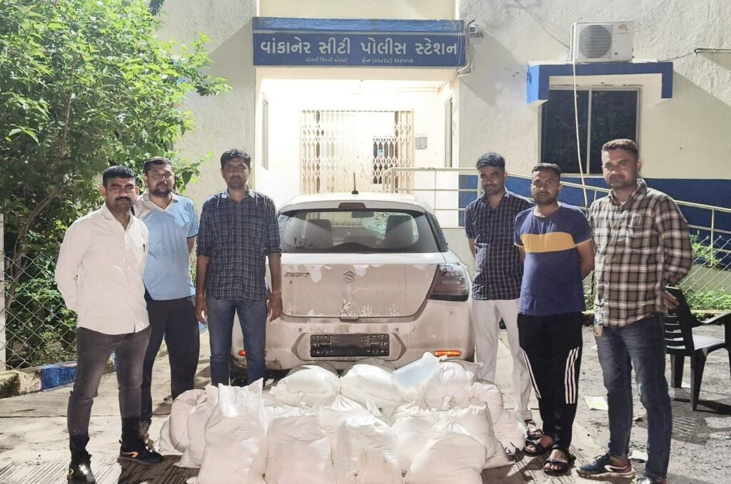 વાંકાનેર: મોરબી જિલ્લામાં પ્રોહિબિશનની બદીઓ નાબૂદ કરવા માટે ચાલી રહેલી ઝુંબેશ અંતર્ગત વાંકાનેર સિટી પોલીસે એક મોટી કાર્યવાહી કરી છે. બાતમીના આધારે વાંકાનેર બાઉન્ડ્રીથી મોરબી તરફ જતી એક સફેદ કલરની સ્વિફ્ટ ગાડીનો પીછો કરીને તેને વાંકાનેર સ્વપ્નેશ્વર મહાદેવ મંદિર સામે નદીના પટમાંથી ઝડપી પાડવામાં આવી હતી. જેમાંથી 550 લિટર દેશીદારૂના જથ્થા મળી આવ્યો છે.