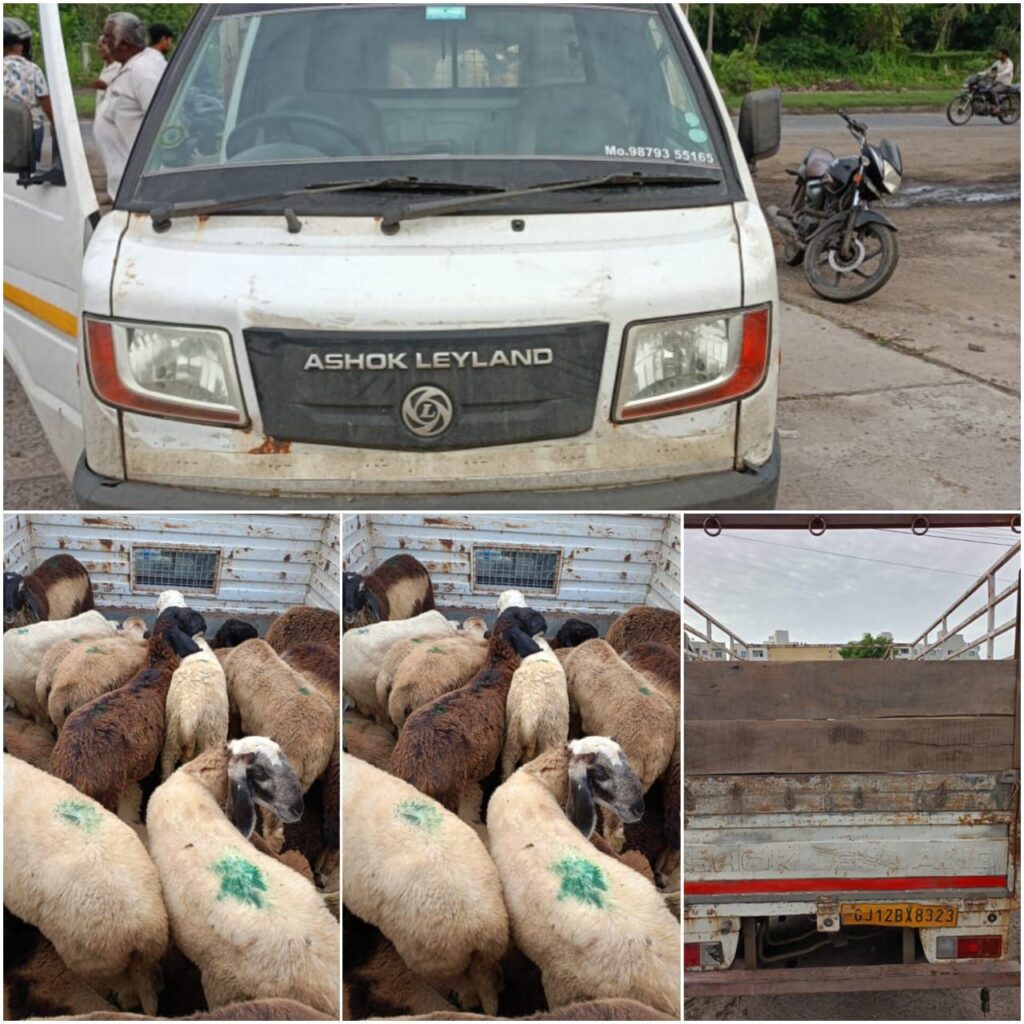 મોરબીના માળીયા ફાટક નજીક કચ્છથી વાહનમાં ક્રૂરતાપૂર્વક ભરીને કતલખાને લઈ જવતા 28 ઘેટાને બચાવાયા