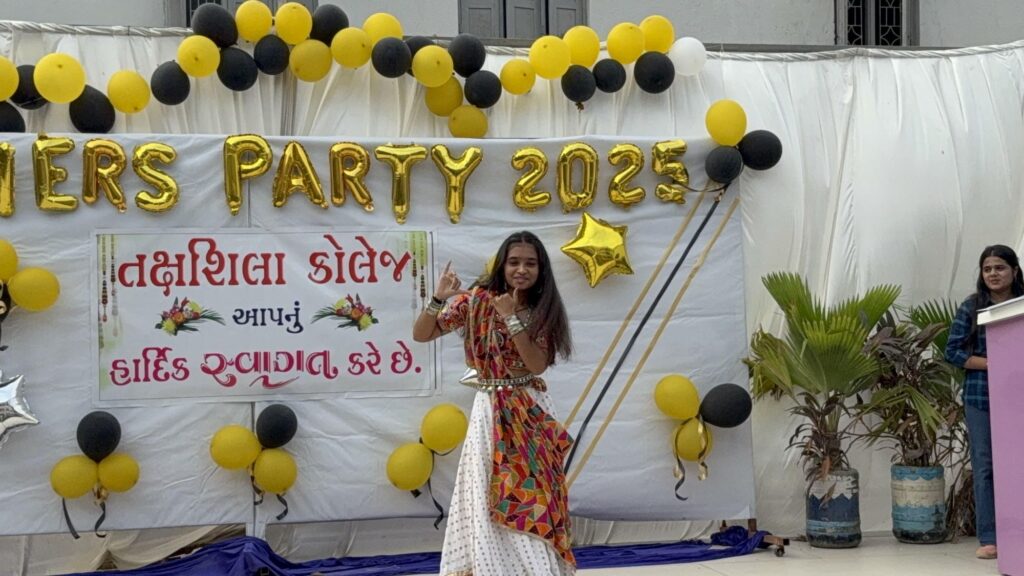 ગુજરાત બોર્ડમાં ધો. ૧૨ ના ટોપર વિદ્યાર્થીઓને વૃક્ષારોપણ માટે રોપા આપીને પ્રોત્સાહિત કરાયા તક્ષશિલા સંકુલમાં આ વર્ષે ચાલુ થયેલ ગુજરાત ટેકનોલોજીકલ યુનિવર્સિટી ( GTU) સંલગ્ન BBA અને BCA કોલેજના વિદ્યાર્થીઓ માટે ફ્રેશર્સ પાર્ટીનું આયોજન થયુ. આ પાર્ટીના સાંસ્કૃતિક કાર્યક્રમમાં તક્ષશિલા સંકુલમાં ચાલતા પીટીસી કોલેજના વિદ્યાર્થીઓએ પણ ભાગ લઈ કાર્યક્રમમાં ચાર ચાંદ લગાવી દીધા હતા. “ એક પેડ માં કે નામ “ બેનર હેઠળ કોલેજના તમામ વિદ્યાર્થીઓને કોલેજ તરફથી વૃક્ષના એક એક રોપાઓ ભેટ આપવામાં આવેલ હતા. કાર્યક્રમને સફળ બનાવવા કોલેજના પ્રોફેસરો- ઝલક શાહ, જાનકી પંચાલ, ક્રિષ્ના વિડજા અને કૃણાલ પ્રજાપતિએ સહયોગ આપ્યો હતો.