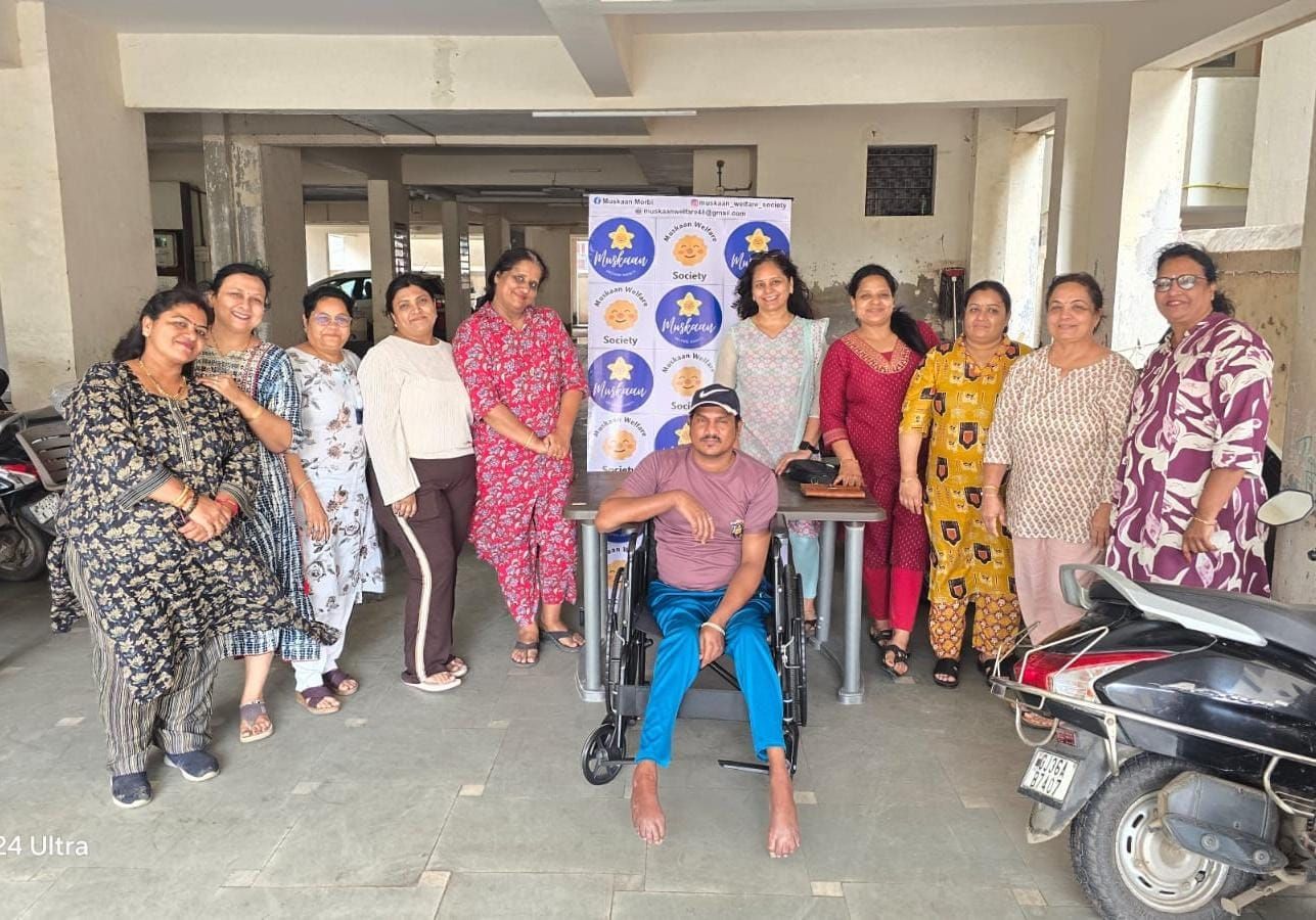 દોડવુ, નાચવુ, કુદવુ કોને ન ગમે? પરંતુ ઈશ્વરે જેને પગ આપ્યા હોય પણ પછી કોઈ કારણસર છીનવાય ગયા હોય તેને દોડવુ તો શું ચાલવુ પણ અશક્ય બને ત્યારે આવાજ એક દિવ્યાંગ (અપંગ) વ્યક્તિને પગ તો ન આપી શકાય પણ પગની ખોટ પુરવા માટેનો એક વિકલ્પ મુસ્કાન વેલ્ફેર સોસાયટી, મોરબી દ્વારા આજે વ્હીલચેર અર્પણ કરી એક નિરાશાભરી જીંદગીમાં આશાનો સંચાર કર્યો હતો. તેની જીંદગીની મોટી ખોટ પુરી કરી એ નિરાશ વ્યક્તિના જીવનમાં ખુશીઓનું વાવેતર કરી આપ્યુ હતુ. વ્હીલચેર અર્પણ કરતી વેળાએ સંસ્થાના સભ્યોએ “સેવા હી ધર્મ હે” નું સૂત્ર સાર્થક કરવા સાથે અન્યને પ્રેરણા સંદેશ આપ્યો હતો.
