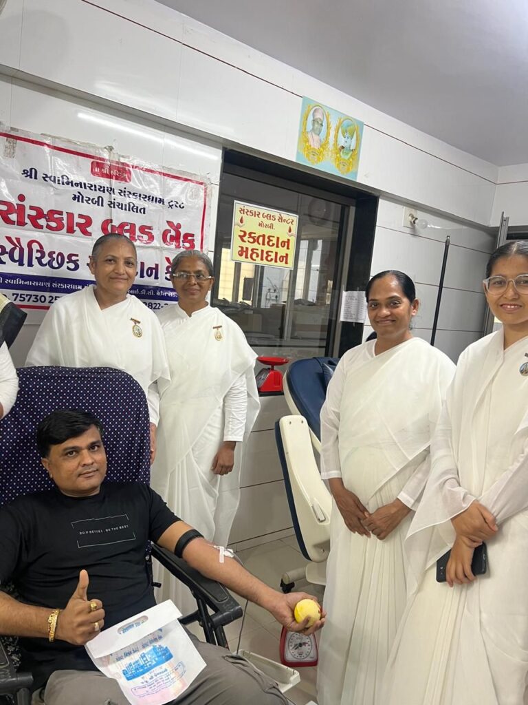 મોરબી : આજરોજ તારીખ 25 ઓગસ્ટ 2025 ના રોજ બ્રહ્માકુમારી સંસ્થા, હેડ-ક્વાર્ટરના મુખ્ય સંચાલિકા આદરણીય દાદી પ્રકાશમણિજીની 18મી વાર્ષિક પુણ્યતિથિ નિમિત સમગ્ર ભારત દેશમાં વિશ્વ બંધુત્વ દિવસ નિમિત્તે રક્તદાન કેમ્પનું આયોજન કરવામાં આવ્યું હતું. જેમાં મોરબીમાં બ્લડ સેન્ટર અને સંસ્કાર બ્લડ સેન્ટર ખાતે બ્રહ્માકુમારી સંસ્થા મોરબીના બી.કે ઉષા દીદી, બી.કે અલ્કા દીદી, બી.કે સમજુ દીદી, બી.કે જુલી દીદી, બી.કે આયુષી દીદી તથા અન્ય આગેવાનો દ્વારા આ મહાન પુણ્ય કાર્યનુ દિપ પ્રજ્વલિત કરી રક્તદાન કેમ્પને ખુલ્લો મુકવામાં આવ્યો હતો. આ રક્તદાન કેમ્પમાં ૫૩ જેટલા લોકોએ રક્તદાન કરીને મહાપુણ્ય કરી ખરા અર્થમાં વિશ્વ બંધુત્વ દિવસ ઉજવ્યો હતો.