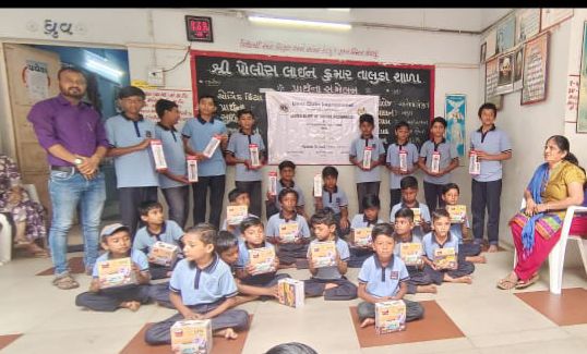 મોરબીની પોલીસલાઇન કુમાર તાલુકા શાળામાં લાઇન્સ કલ્બ ઓફ મોરબી નઝરબાગના પ્રેસિડેંટ દિનેશભાઇ વિડજા, સેક્રેટરી પિયુષભાઇ સાણજા, ટ્રેજરર કમલેશભાઇ પનારાના સાહયોગથી શાળાના ૨૨૭ બાળકોને બર્થડે સેલિબ્રશન પ્રોજેક્ટ અંતર્ગત બાલવાટીકા, ધોરણ ૧ થી ૫ ના બાળકોને લંચ બોક્સ તેમજ ધોરણ ૬ થી ૮ ના બાળકોને વોટરબેગ પ્રોત્સાહન ઇનામ તરીકે આપવામા આવ્યા હતા.આ માટે શાળાના આચાર્ય રાકેશભાઈ રાઠોડએ યાદિમાં જણાવેલ છે કે આ પ્રોજેક્ટમાં મોરબીની સરસ્વતિ મંદિર પ્રાથમિક શાળાના ૩૪૮ બાળકો તેમજ ટંકરાની સજનપર પ્રાથમિક શાળાના ૩૫૮ બાળકો સાથે કુલ ૯૩૩ બાળકોને રૂા.૮૮,૦૦૦ ના ખર્ચે લંચબોક્ષ-વોટરબેગ આપેલ છે.જે બદલ દાતાનો આભાર વય્કત કરવામાં આવ્યો હતો.