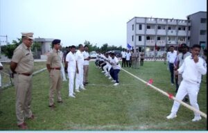 મોરબી : મોરબી જિલ્લા પોલીસ દ્વારા ફિટ ઇન્ડિયા મુવમેન્ટ અને નેશનલ સ્પોર્ટ્સ ડે નિમિત્તે વિવિધ રમતોનું આયોજન કરવામાં આવ્યું હતું. પોલીસ હેડક્વાર્ટર, મકનસર ખાતે યોજાયેલા આ કાર્યક્રમમાં વોલીબોલ ટૂર્નામેન્ટ અને ટગ ઓફ વોર (રસ્સા ખેંચ) જેવી સ્પર્ધાઓનું આયોજન કરવામાં આવ્યું હતું.