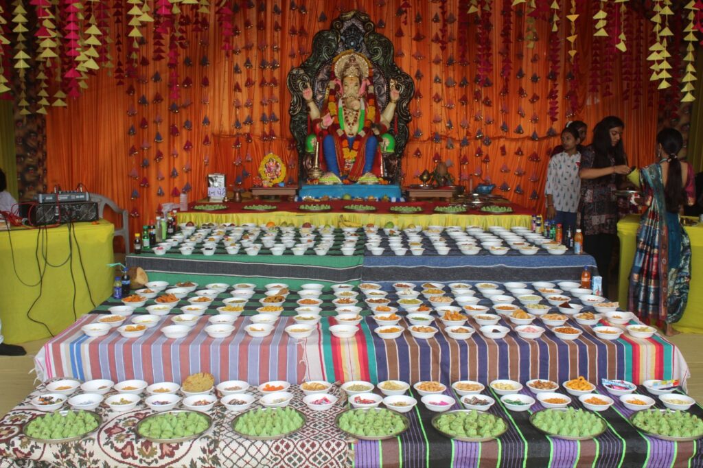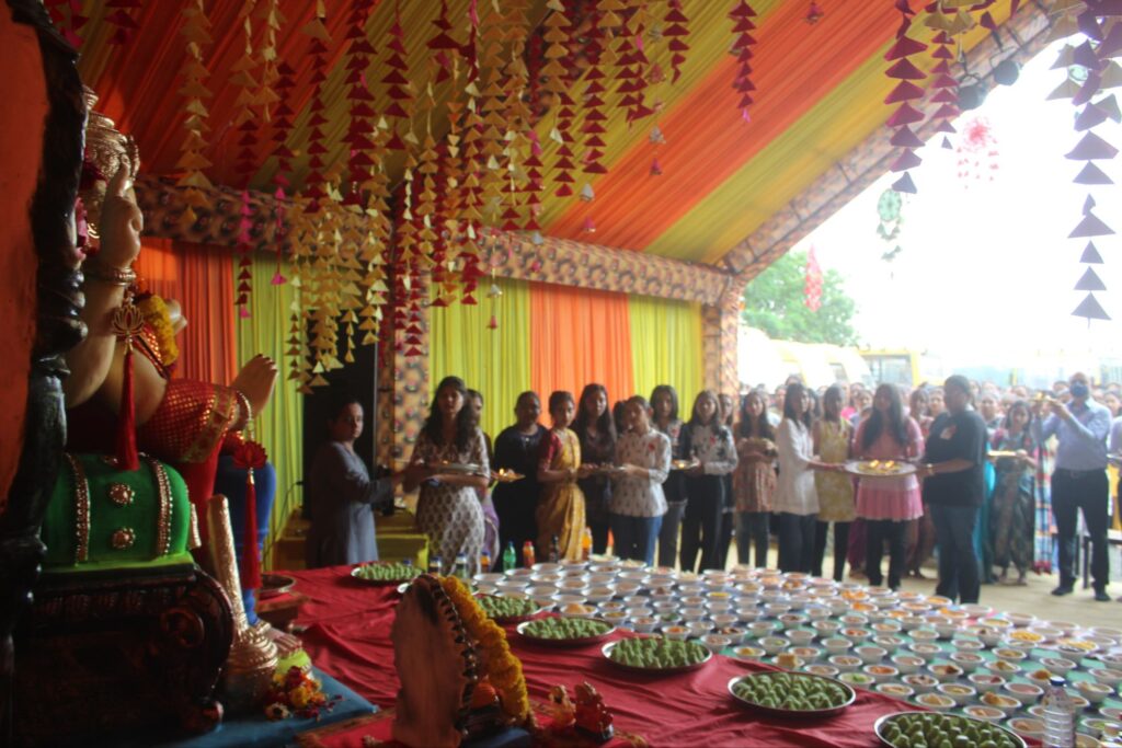 વિધ્નહર્તા ગણપતિ બાપાની વિધિવત પૂજા-અર્ચના બાદ ભવ્ય 256 ભોગનો અન્નકૂટ ધરાવવામાં આવ્યો હતો. આ આયોજનમાં નવયુગ ગ્રુપ ઓફ કોલેજના તમામ વિદ્યાર્થીઓ અને સ્ટાફગણ ઉત્સાહપૂર્વક જોડાયા હતા, જેના કારણે કાર્યક્રમને વિશેષ ઊર્જા અને એકતા મળી હતી.