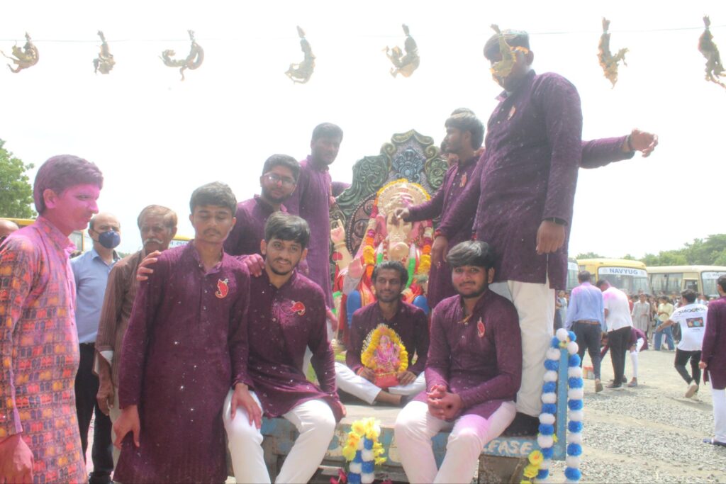 મોરબી : મોરબીના જાણીતા નવયુગ ગ્રુપ ઓફ કોલેજ, વીરપર ખાતે નવયુગ કા રાજા” ગણપતિ મહોત્સવ ભવ્ય રીતે મહાઆરતી સાથે ઉજવાયો હતો અને અગલે બરસ તુમ જલ્દી આનાના નાદ સાથે ગણપતિ બાપાની ભવ્ય વિસર્જન યાત્રા કાઢવામાં આવી હતી.