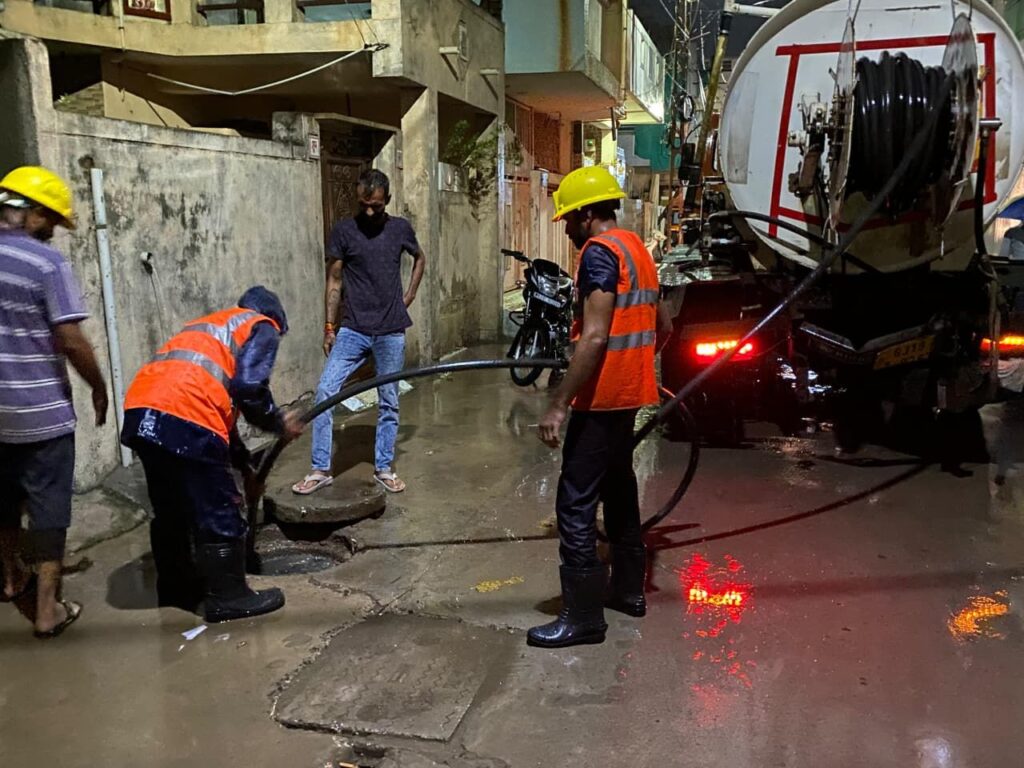 મોરબીના હાઉસિંગ બોર્ડમાં રાત્રે ચાલુ વરસાદમાં ગટરનું કામ કરાવતા લોકસેવક