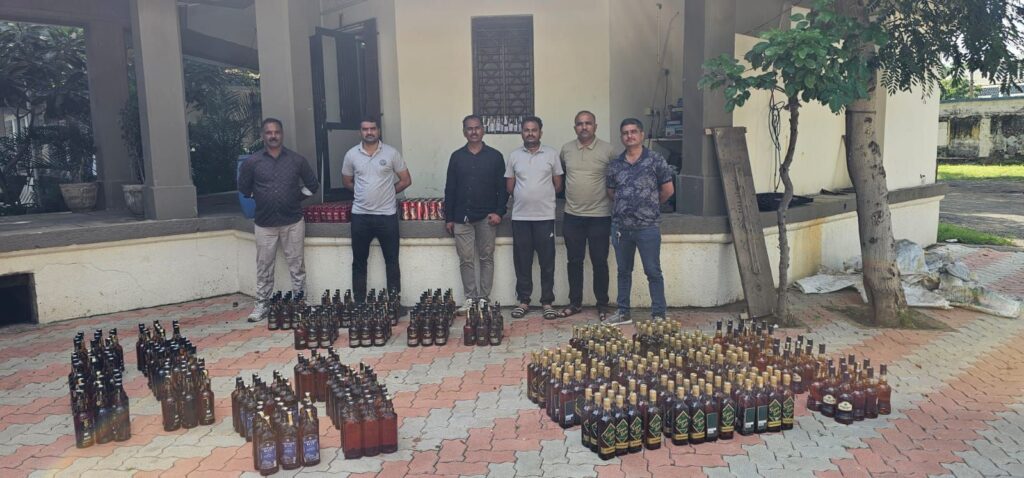 મોરબી એલસીબી ટીમને બાતમી મળી હતી કે મોરબીના ભરતનગરથી ખોખરા તરફ જવાના રસ્તે આવેલ રાધે પી.વી.સી. ઇન્ડસ્ટ્રીઝથી થોડે આગળ રોડની બાજુમાં પાણીની ખાઇમાં કોઈ અજાણ્યા શખ્સો દ્વારા ઇંગ્લીશ દારૂનો જથ્થો ઉતારવામાં આવ્યો છે અને આ ઇંગ્લીશ દારૂની હેરાફેરી કરવાની પ્રવૃત્તિ ચાલુ છે. જેથી એલસીબી ટીમે ત્યાં દરોડો પાડતા ત્યાંથી બ્લેંડર પ્રાઇડ સિલેક્ટ પ્રિમીયમ વ્હીસ્કીની 96 બોટલ, બ્લેડર પ્રાઇડ રીઝર્વ કલેક્શન વ્હીસ્કીની 36 બોટલ, 8 પીએમની 71 બોટલ, વિન્ટેજ બ્લુ પ્રિમીયમ વ્હીસ્કીની 57 બોટલ, ગ્રીન લેબલ રીચ બ્લેન્ડ વ્હીસ્કીની 132 બોટલ, રોયલ ચેલેન્જર પ્રિમીયમ ડીલક્સ વ્હીસ્કીના 95 ચપલા અને કિંગ ફીશર સુપર સ્ટ્રોંગ પ્રિમીયમ બિયરના 46 ટીન મળી રૂ.5,16,220નો દારૂ-બિયરનો જથ્થો મળી આવ્યો હતો.એલસીબી ટીમે આ દારૂ-બિયરનો જથ્થો કબ્જે કરી દારૂ મોકલનાર તથા મંગાવનાર અજાણ્યા શખ્સો સામે તાલુકા પોલીસ મથકે ગુનો નોંધાવી આગળની કાર્યવાહી હાથ ધરી છે.