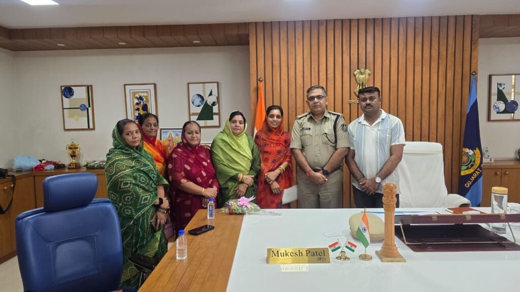 મોરબી: રાજપુત કરણી સેનાની મોરબી જિલ્લાની મહિલા ટીમે મોરબી જિલ્લા પોલીસ અધિક્ષક મુકેશકુમાર પટેલની શુભેચ્છા મુલાકાત કરી હતી. આ તકે શ્રી રાજપૂત કરણી સેના જિલ્લા પ્રમુખ ગાયત્રીબા જાડેજા, શહેર પ્રમુખ ઇલાબા ઝાલા, પ્રીતીબા ઝાલા, હંસાબા ઝાલા, નયનાબા જાડેજા ઉપસ્થિતિ રહ્યા હતા.