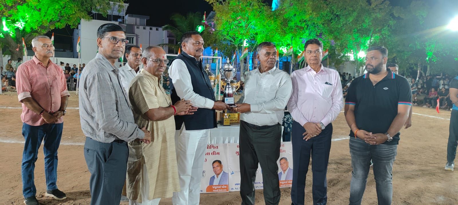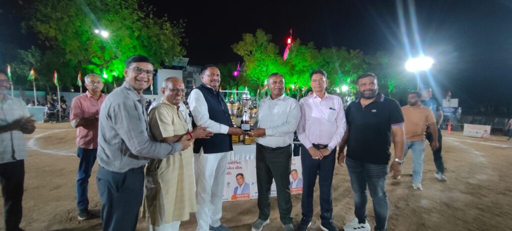 ચેમ્પિયન ટીમને સુરેન્દ્રનગર જિલ્લા સાંસદ ચંદુભાઈ શિહોરો. આસ્થા સ્પિનટેક્ષના એમડી જશુભાઈ પટેલ, દિવ્યાંગ પટેલ, મોરબી જિલ્લા ભાજપ પ્રમુખ સહિતના મહાનુભાવોના હસ્તે ચેમ્પિયન ટ્રોફી એનાયત કરવામાં આવી હતી.