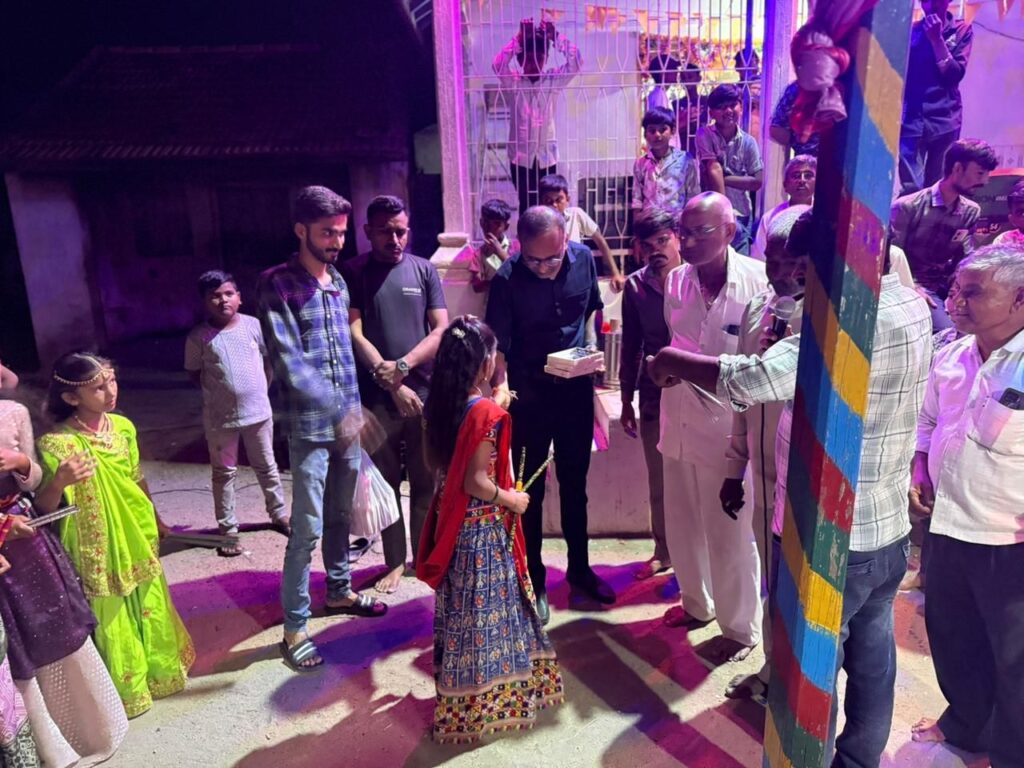 મોરબી : માતાજીના નવલા નોરતા નવરાત્રી ચાલી રહી છે. સીમાવર્તી ગામોમાં જે નાની – નાની બાળાઓ માતાજીના ગરબા રમીને માતાજીના ગુણગાન ગાય છે ત્યાં નાની બાળાઓને સીમા જાગરણ મંચ મોરબી જિલ્લા દ્વારા લ્હાણી કરવામાં આવી હતી. આ દરમિયાન નાની બાળાઓનો ઉત્સાહ જોઈને આનંદની લાગણી અનુભવી હતી.