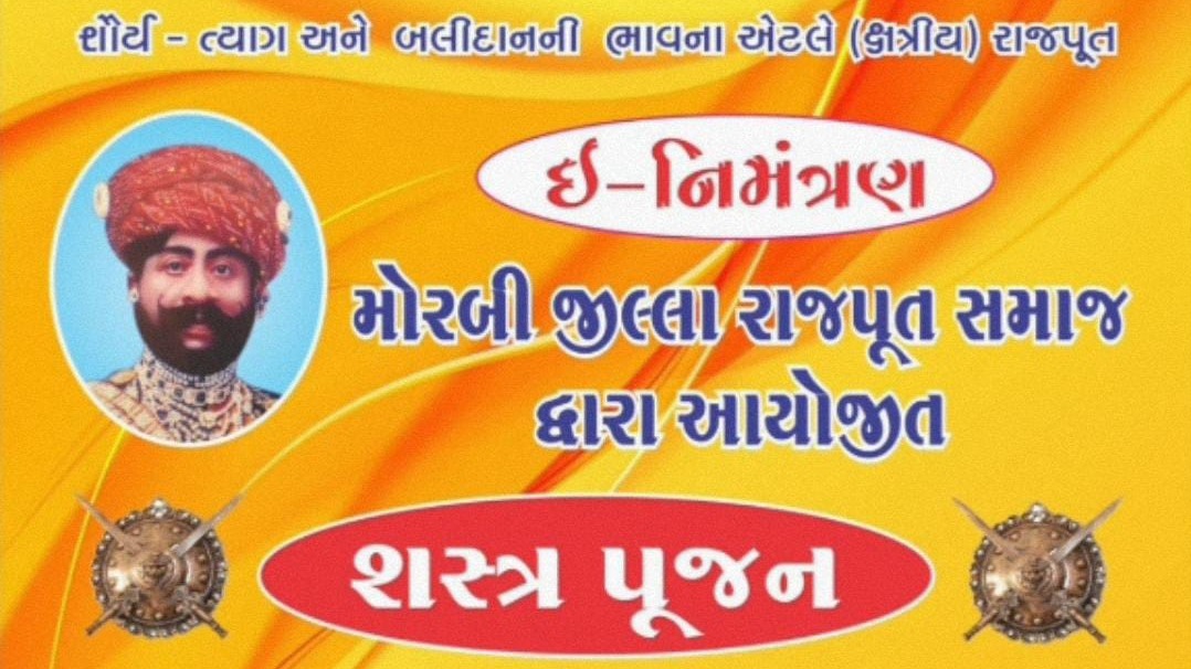 મોરબી જિલ્લા રાજપૂત સમાજ દ્વારા વિજયાદશમી પર્વ નિમિત્તે શૌર્ય અને પરંપરાને ઉજાગર કરતો ભવ્ય શસ્ત્ર પૂજન કાર્યક્રમ અને મહા-રેલીનું આયોજન કરવામાં આવ્યું છે. આવતીકાલે, ગુરુવાર, ૦૨/૧૦/૨૦૨૫ ના રોજ વિજયાદશમી (દશેરા) ના પાવન અવસર પર શસ્ત્ર પૂજન અને ભવ્ય રેલીનું આયોજન કરવામાં આવ્યું છે.