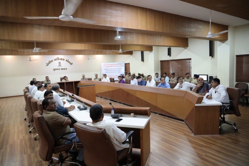 મોરબી : મોરબીમાં આજે રેન્જ આઈજી અશોક કુમારની અધ્યક્ષતામાં એસપી કચેરી ખાતે સિરામિક એસોસિએશન અને અન્ય વિવિધ ઉદ્યોગોના અગ્રણીઓ સાથે મહત્વપૂર્ણ બેઠકનું આયોજન કરવામાં આવ્યું હતું. જેમાં ઉદ્યોગકારોએ વિવિધ પ્રશ્ને રજૂઆતો કરવામાં આવી હતી.