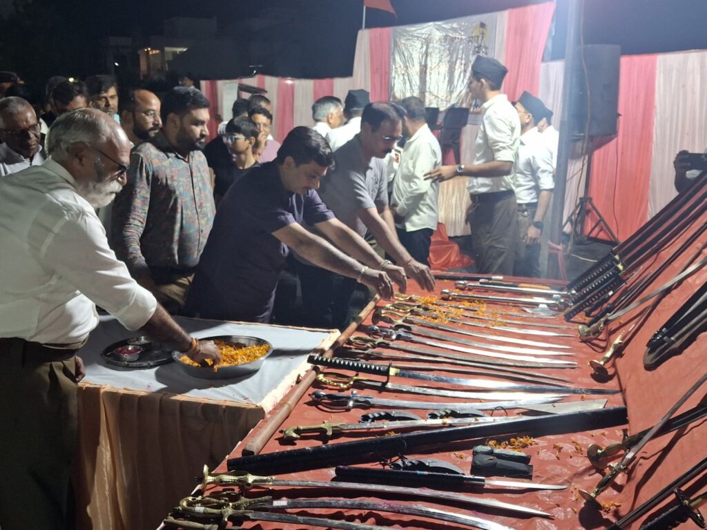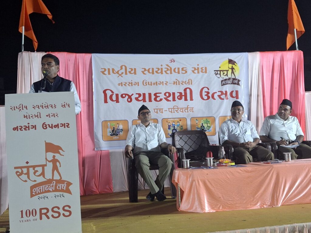જેમાં મોરબીના લીલાપર કેનાલ રોડ પર આવેલ રામોજી ફાર્મ ખાતે નરસંગ ઉપનગર-મોરબી દ્વારા વિજયાદશમી ઉત્સવ તેમજ શસ્ત્ર પૂજનના કાર્યક્રમનું આયોજન કરવામાં આવ્યું હતું. જેમાં બહોળી સંખ્યામા રાષ્ટ્રીય સ્વયંસેવકના સ્વયંસેવકો, કાર્યકર્તાઓ તથા મોરબીના ભાઈ-બહેનો ઉપસ્થિત રહ્યા હતા. હજુ આગામી દિવસોમાં ઘર ઘર સંપર્ક, પ્રબુદ્ધ નાગરિક ગોષ્ઠી અને યુવા સંમેલન સહિતના કાર્યક્રમો યોજાશે.