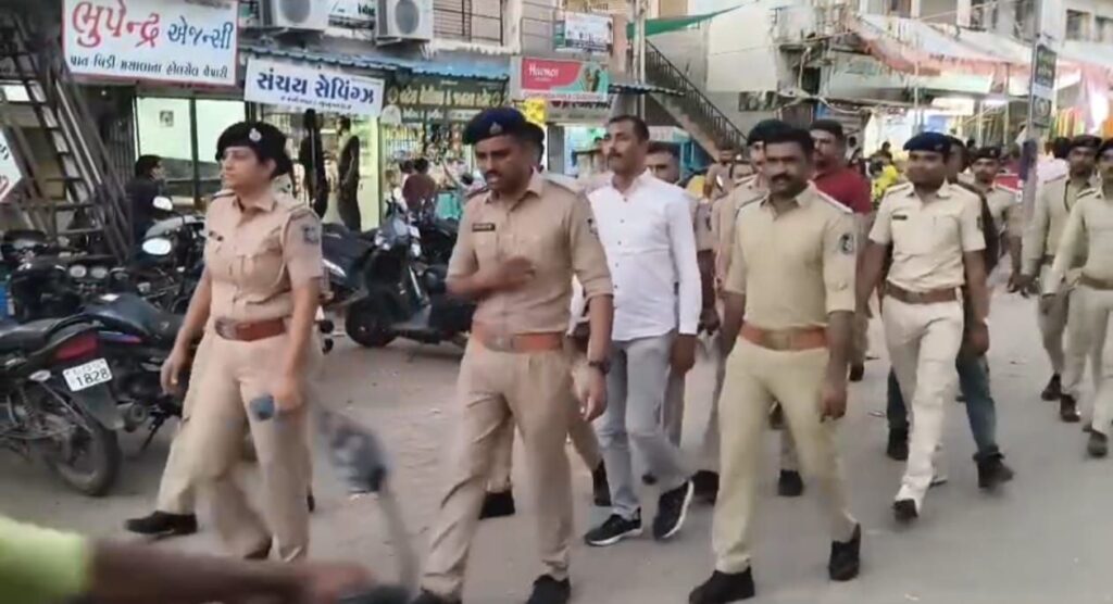 દિવાળીના તહેવારો અનુલક્ષીને હળવદ પોલીસ દ્વારા શહેરના રાજમાર્ગો પર ફૂટ પેટ્રોલિંગ