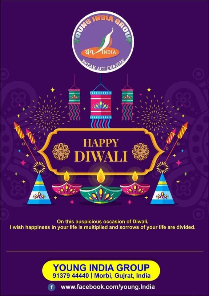 આપ સૌને અને આપના પરિવારને દિવાળી તથા નવા વર્ષની હાર્દિક શુભકામનાઓ. પ્રકાશ, સમૃદ્ધિ અને શાંતિ હંમેશા આપના જીવનમાં વસે તેવી પ્રાર્થના. જય હિંદ!