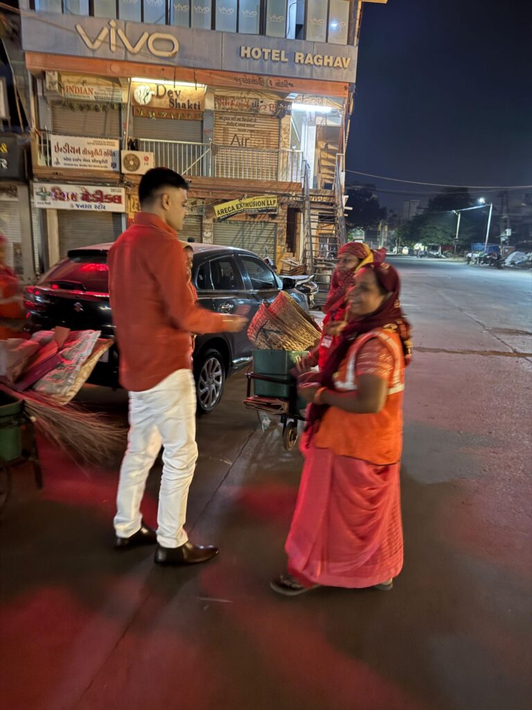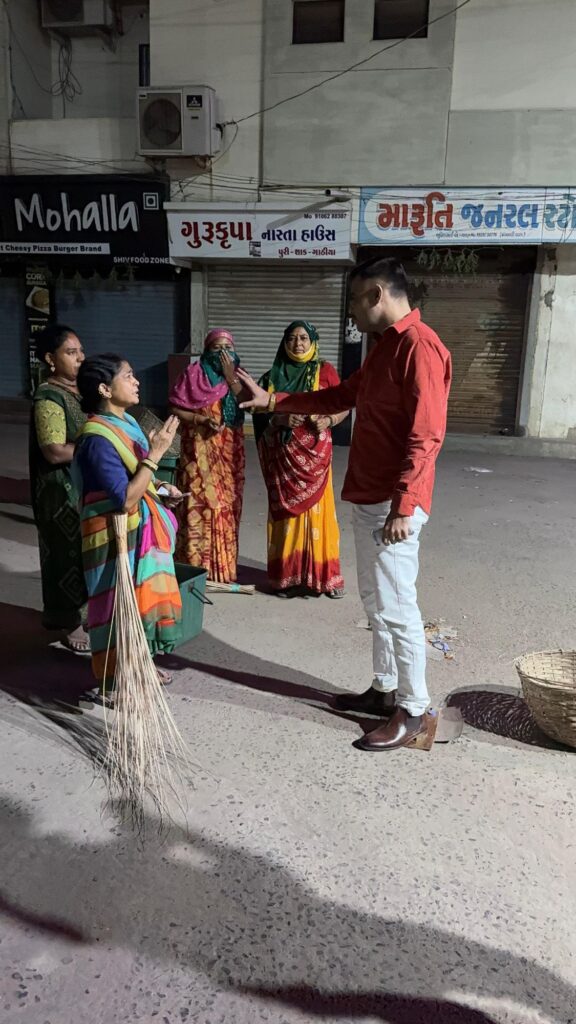 યંગ ઇન્ડિયા ગ્રુપના સંસ્થાપક શ્રી ડો.દેવેન રબારીએ દિવાળીની પવિત્ર રાત્રે શહેરના સફાઈ કર્મયોગીઓની અમૂલ્ય સેવાને બિરદાવવા, તેમના પ્રત્યે કૃતજ્ઞતા વ્યક્ત કરવા ભેટ-સોગાદનું વિતરણ કર્યું હતું અને તેમના આશીર્વાદ મેળવ્યા હતા. આ ભેટ-સોગાદ એક નિમિત્ત હતું, જેના દ્વારા ગ્રુપે સફાઈ કર્મચારીઓના સમર્પણ અને મહેનતનું હૃદયપૂર્વક સન્માન કર્યું હતું જે યંગ ઇન્ડિયા ગ્રુપની ‘સર્વ જન હિતાય, સર્વ જન સુખાય’ની વિચારધારાને પ્રતિબિંબિત કરે છે.