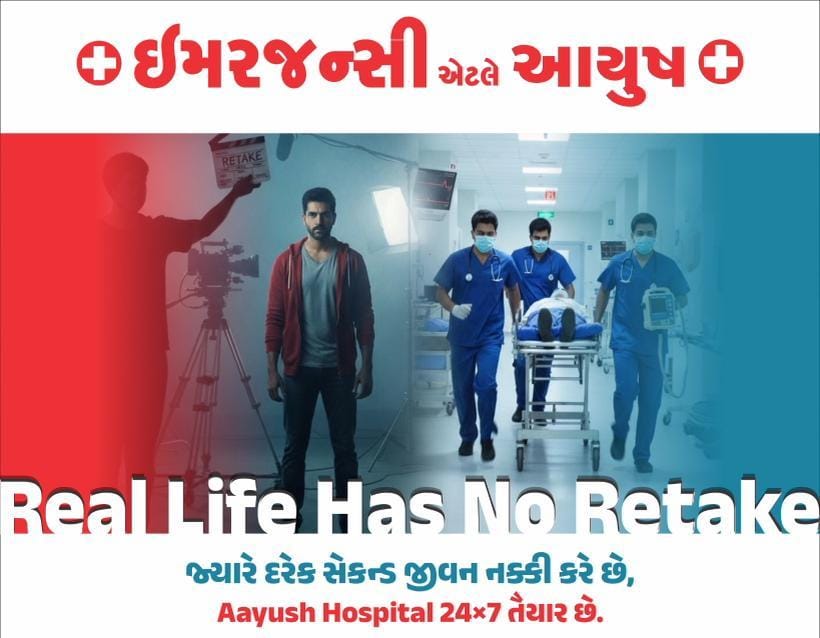 મોરબી ( પ્રમોશનલ આર્ટિકલ) : Real Life Has No Retake, જ્યારે સાચી ઇમરજન્સી હોય ત્યારે દરેક સેકન્ડ કિંમતી હોય છે. માટે જ આયુષ હોસ્પિટલ ઇમરજન્સી માટે 24×7 કાર્યરત છે. રસ્તાની દુર્ઘટના હોય કે કાર્ડિયાક અને ક્રિટિકલ ઇમરજન્સી અહીં નિષ્ણાંત ડોક્ટરો, એડવાન્સ ICU અને રેપીડ રિસ્પોન્સની ટિમ સમય પહેલા જ એક્શન લ્યે છે. તો મોરબી જિલ્લાના લોકો કોઈ પણ ઈમરજન્સીમાં ગમે ત્યારે અહીં આવી શકે છે. અહીં 17 ડિસેમ્બર સુધી ઇમરજન્સી કન્સલ્ટેશન નિઃશુલ્ક રાખવામાં આવ્યું છે.