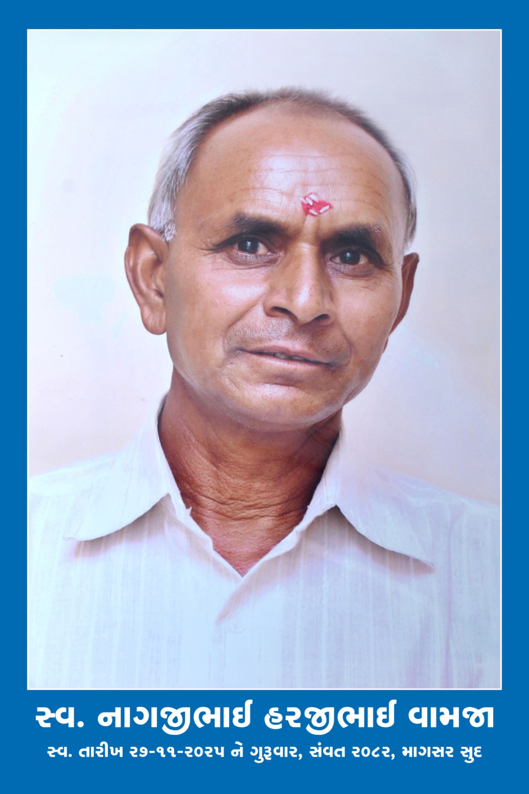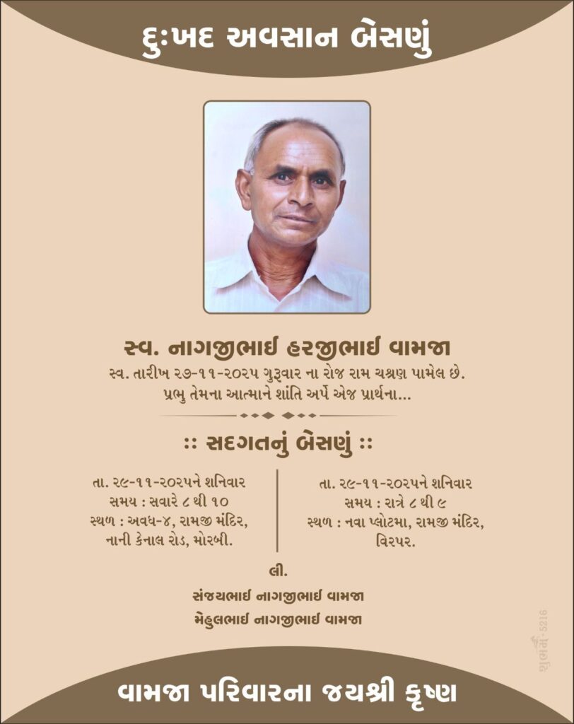 મોરબી નિવાસી નાગજીભાઈ હરજીભાઈ વામજાનું અવસાન, કાલે બેસણું