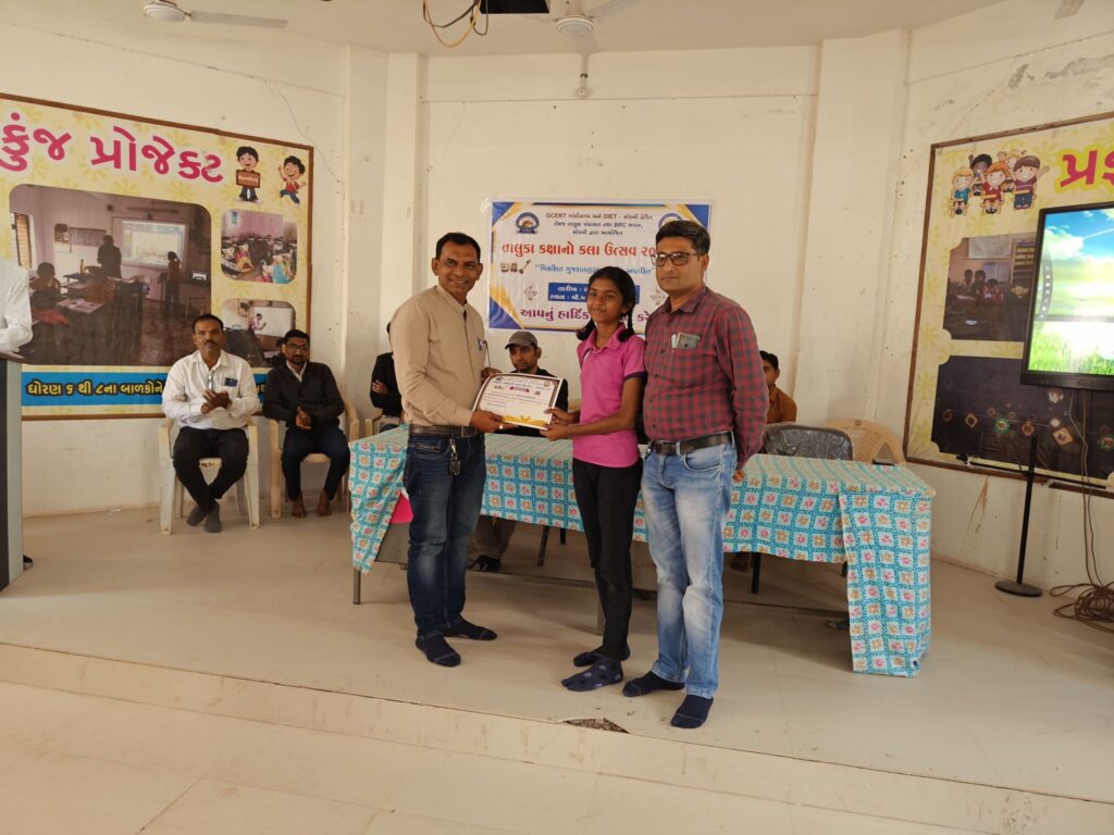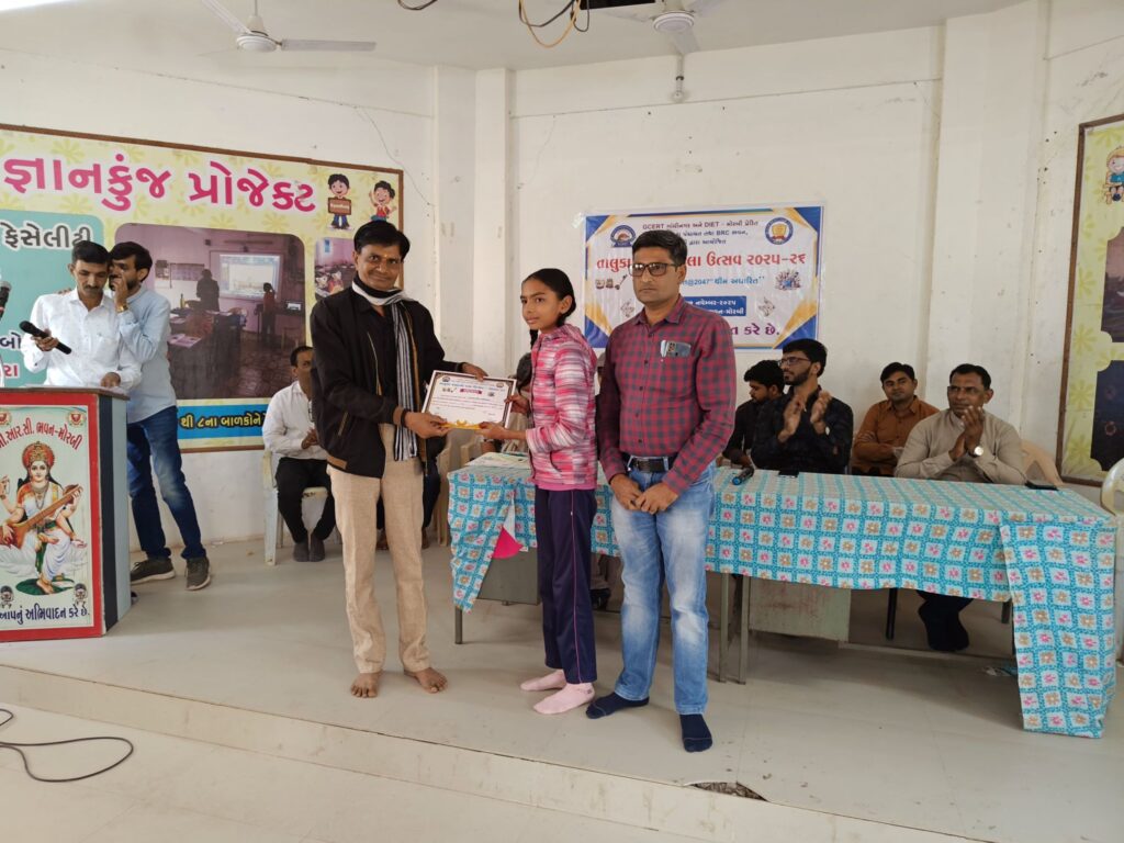 મોરબી : બી. આર. સી. ભવન મોરબી આયોજિત તાલુકા કક્ષાના કલા મહાકુંભમાં નાની વાવડી કન્યા તાલુકા શાળામાં અભ્યાસ કરતી વિદ્યાર્થિની ધ્રુવી ટીલાવતે તાલુકા કક્ષાએ પ્રથમ નંબર તથા ચિત્ર સ્પર્ધામાં નાની વાવડી કન્યા તાલુકા શાળામાં અભ્યાસ કરતી વિદ્યાર્થિની રીયા બાવરવાએ તાલુકા કક્ષાએ દ્વિતીય નંબર પ્રાપ્ત કર્યો છે. આ સિદ્ધિ બદલ શાળા પરિવાર તરફથી વિદ્યાર્થિનીઓને શુભેચ્છા પાઠવવામાં આવી છે.