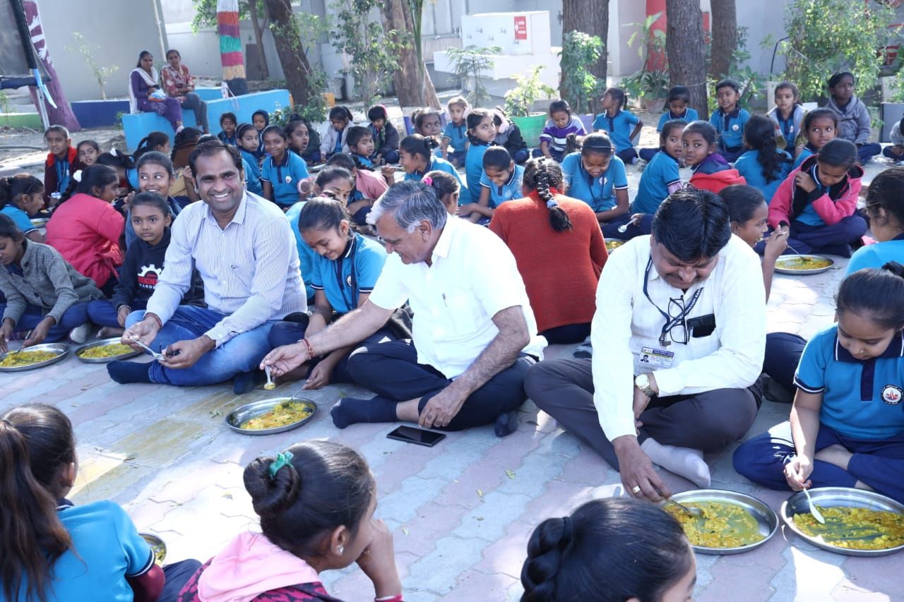 ધારાસભ્ય દુર્લભજીભાઈ દેથરીયાએ નીચે બેસી બાળકોની થાળીમાં જ મધ્યાહ્નન ભોજન ગ્રહણ કર્યું
