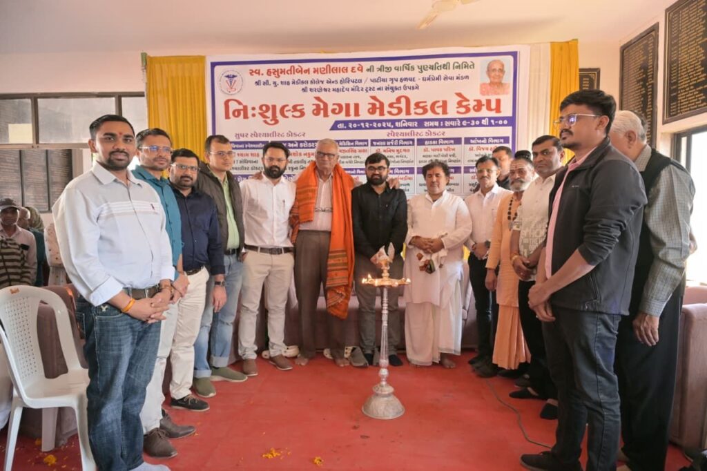 હળવદ ખાતે સ્વ. હસુમતીબેન મણીલાલભાઈ દવેની તૃતીય વાર્ષિક પુણ્યતિથિ નિમિત્તે ફ્રી મેગા મેડિકલ કેમ્પનું ભવ્ય આયોજન કરવામાં આવ્યું હતું, જેમાં કુલ ૧૭૫૦ દર્દીઓએ આરોગ્ય સેવાઓનો લાભ લીધો હતો આ મેડિકલ કેમ્પનું આયોજન સી. યુ. શાહ મેડિકલ કોલેજ એન્ડ હોસ્પિટલ – સુરેન્દ્રનગર ના ડાયરેક્ટર અને સીઈઓ ડૉ શ્યામ નિધેશભાઈ શાહ ના માર્ગદર્શન હેઠળ અને હળવદ સેવાકીય પ્રવૃતિઓ કરતું પાટીયા ગ્રુપ, ધર્મપ્રેમી સેવા મંડળ તથા શ્રી શરણેશ્વર મહાદેવ મંદિરના સંયુક્ત ઉપક્રમે કરવામાં આવ્યું હતું કેમ્પ દરમિયાન વિવિધ રોગોના નિષ્ણાત ડૉક્ટરો જેમાં ૬ થી વધુ સુપર સ્પેશિયાલિસ્ટ અને ૧૦ જેટલા સ્પેશિયાલિસ્ટ નિષ્ણાંત ડોક્ટરો દ્વારા દર્દીઓની તપાસ કરવામાં આવી હતી અને જરૂરી દવાઓ સંપૂર્ણપણે નિઃશુલ્ક આપવામાં આવી હતી, બોડી ચેકઅપ ટેસ્ટ પણ ટોકન દરે કરી આપવામાં આવ્યા હતા તાલુકા કક્ષા એ ગ્રામ્ય વિસ્તારોમાં ગુણવત્તાસભર આરોગ્યસેવા પહોંચાડવાના ઉદ્દેશથી આયોજિત આ કેમ્પને નાગરિકો તરફથી ઉત્તમ પ્રતિસાદ મળ્યો હતો આ કેમ્પ ના દાતા પરિવાર ધર્મેન્દ્રભાઈ – જીતેન્દ્રભાઈ અને વિપુલભાઈ દવે (બિલ્ડર અમદાવાદ મુંબઈ ) જેઓ દ્વારા હળવદ તાલુકા ના દર્દી નારાયણ ને ઉત્તમ આરોગ્યલક્ષી સેવાઓ ઘર આંગણે મળી રહે તેવા શુદ્ધ અને પવિત્ર ભાવ થી આ કાર્યક્રમ નું આયોજન કરવામાં આવ્યું હતું આ કાર્યક્રમ માં સાંસદ ચંદુભાઈ શિહોરા , મહાકાળી આશ્રમ ના મહંત શ્રી અમરગીરી મહારાજ , શ્રી લક્ષ્મીનારાયણ મંદિર ના મહંત શ્રી દીપકદાસજી મહારાજ , હળવદ મામલતદાર અલ્કેશભાઈ ભટ્ટ , સહિત રાજકીય સામાજિક અને સેવાકીય અગ્રણીઓ ખાસ ઉપસ્થિત રહ્યા હતા..
