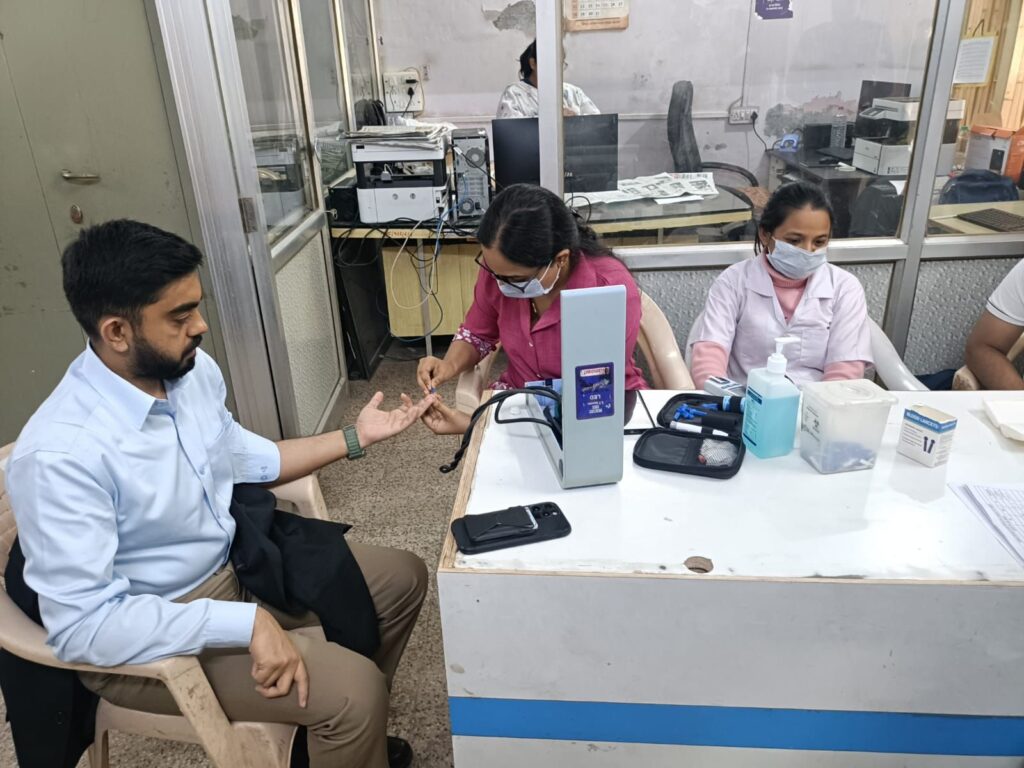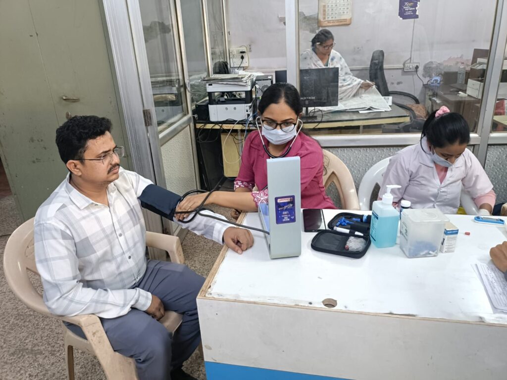 મોરબી મહાનગર પાલિકાના મેઈન બિલ્ડીંગ ખાતે બપોરે ૨ થી ૭ સુધી યુપીએચસી ગોકુલ નગર ટીમ દ્વારા MMC કચેરી સ્ટાફ, ડ્રેનેજ શાખા, તથા ઈલેક્ટ્રીક શાખાના સ્ટાફની આરોગ્ય ચકાસણી કરવામાં આવી હતી. આ કાર્યક્રમમાં કુલ 150થી વધુ મહાનગર પાલિકાના કર્મીઓએ આરોગ્યની ચકાસણી કરાવી હતી. આ કાર્યકર્મનો મુખ્ય ઉદેશ્ય મહાનગર પાલિકાના તમામ ક્રમચારી સ્ટ્રેસ ફ્રી જીવન નિર્વાહ કરે, તેમજ આધુનિક સમય માં હતાશા- નિરાશા થી મુક્ત આનંદ- ઉત્સાહ સાથે પોતાનું કાર્ય કરે તેવો રહ્યો હતો. આગામી તા. ૨૬ના રોજ મહાનગર પાલિકાના તમામ સફાઈ કામદારોની આરોગ્યની ચકાસણી કરવાનું આયોજન પણ કરવામાં આવ્યું છે. આ કાર્યક્રમમાં MMCના કમિશનર સ્વપ્નિલ ખરે IAS, નાયબ કમિશનર કુલદીપસિહ વાળા ઉપસ્થિત રહ્યા હતા.