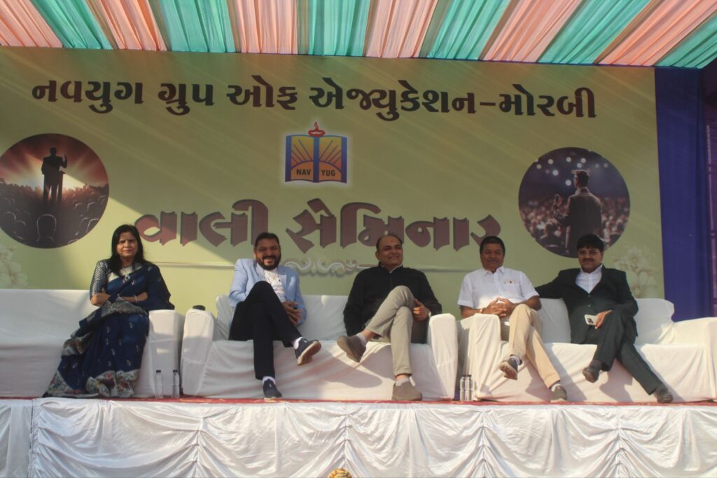 મોરબી : નવયુગ ગ્રુપ ઓફ એજ્યુકેશન, મોરબી દ્વારા તાજેતરમાં વિદ્યાર્થીઓના સર્વાંગી વિકાસના હેતુથી એક ભવ્ય અને વિચારપ્રેરક મેગા વાલી સેમિનારનું આયોજન કરવામાં આવ્યું હતું. સંસ્થાની સ્થાપનાના 25 વર્ષ પૂર્ણ થતા સિલ્વર જ્યુબિલીની ઉજવણી બાદ, પ્રમુખ પી.ડી. કાંજીયાના વિચારથી વર્તમાન વાલીઓને એકસાથે બોલાવવાનું આયોજન કરાયું હતું. 25 ડિસેમ્બરના રોજ યોજાયેલા આ સેમિનારમાં છ હજારથી વધુ વાલીઓની ઉત્સાહભરી ઉપસ્થિતિ જોવા મળી, જે નવયુગ સંસ્થા પ્રત્યેના વિશાળ વિશ્વાસનું પ્રતીક છે.
