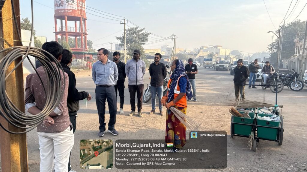 મોરબીમાં તા. 22-12-2025ના રોજ મહાનગરપાલિકાના નાયબ કમિશનર દ્વારા ક્લસ્ટર નં. 9ની વિઝીટ કરવામાં આવી હતી. જેમાં ક્લસ્ટર નં. 9ના સફાઈ કર્મચારીની હાજરીની ચકાસણી કરવામાં આવી હતી.