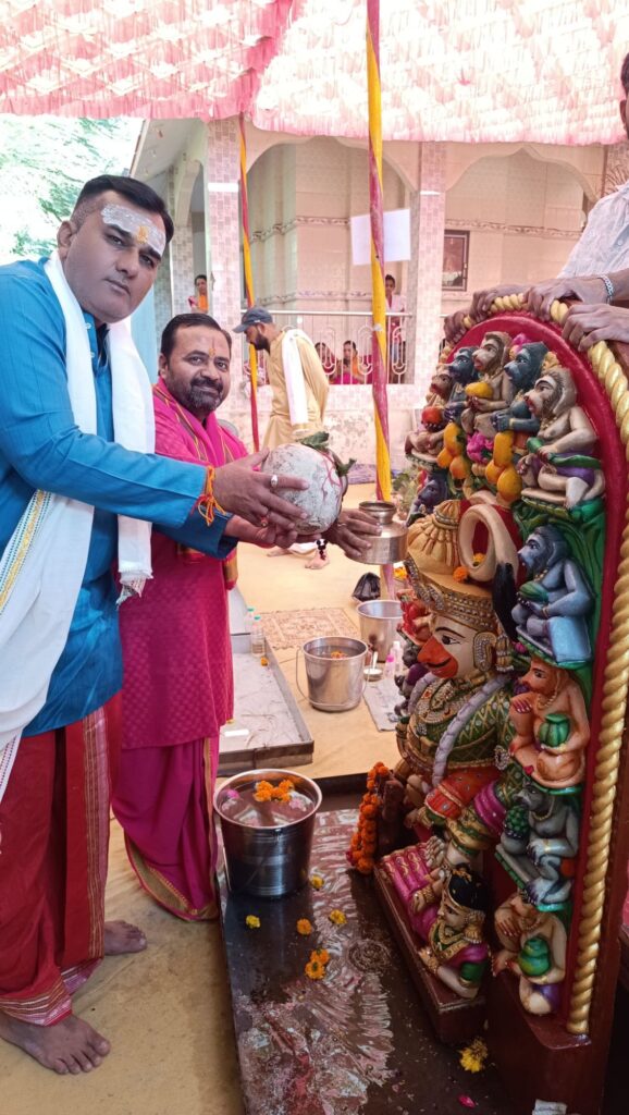 વાંકાનેર શ્રી ગંગેશ્વર મહાદેવ મંદિરમાં પ્રાણ પ્રતિષ્ઠા મહોત્સવમાં ત્રીજા દિવસે કસ્ટ ભંજન હનુમાનજી સહિત દેવોની મંત્રોચ્ચાર સાથે પ્રતિષ્ઠા વિધિ સંપન્ન