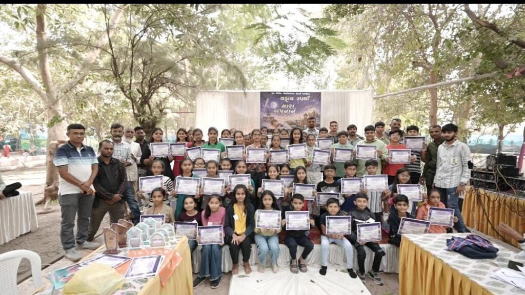જેમાંથી ગુજરાતી માધ્યમ ના પ્રાથમિક વિભાગ (ધોરણ ૬,૭અને૮) માં પ્રથમ ક્રમે સાવરીયા ઉર્વીશા કિશોરભાઈ, દ્વિતીય ક્રમે બોપલિયા ભવ્ય કિશોરભાઈ અને તૃતીય ક્રમે સંઘાણી મોક્ષા રજનીશભાઈ વિજેતા બન્યા હતા જ્યારે ગુજરાતી માધ્યમના માધ્યમિક વિભાગ (ધોરણ ૯ અને ૧૦) ના પ્રથમ ક્રમે કંઝારીયા તમન્ના ભાવેશભાઈ, દ્વિતીય ક્રમે પાઠક રાજલ હિમાંશુભાઈ અને તૃતીય ક્રમે પરમાર અંજલી વિજેતા બન્યા હતા તેમજ અંગ્રેજી માધ્યમમાં પ્રથમ ક્રમે જીયાન પટેલ, દ્વિતીય ક્રમે રાણવા શ્રીયા મનસુખભાઈ, તૃતીય ક્રમે ચાવડા મેઘાવી વિનોદભાઈ વિજેતા બન્યા હતા.વિજેતા વિદ્યાર્થીઓને શીલ્ડ, શિક્ષણ કીટ સાથે સન્માનિત કરવામાં આવ્યા હતા તેમજ સ્પર્ધામાં ભાગ લેનારા તમામ વિદ્યાર્થીઓને સર્ટિફિકેટ આપવામાં આવ્યા હતા.