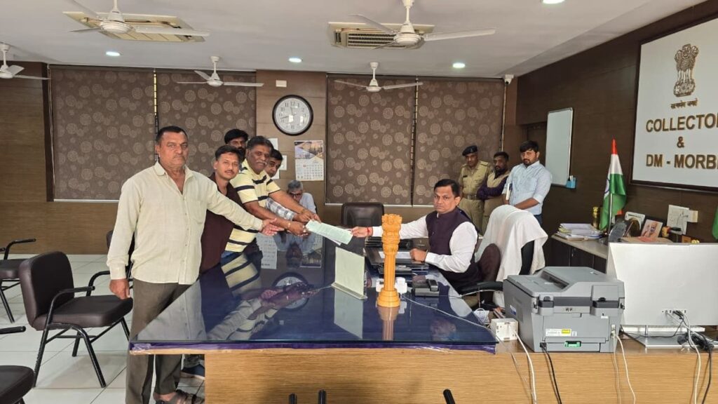 મોરબીના નવલખી રોડ પર આવેલા યમુનાનગર સોસાયટી, શ્રદ્ધા પારર્ક સોસાયટી અને બોડાસર વાડી વિસ્તારમાં ગુજરાત સરકારના પ્રવર્તમાન અશાંતધારો લાગુ કરવા બાબતે આજ રોજ આ વિસ્તારના રહીશોએ કલેક્ટર કચેરીએ રૂબરૂ જઈને કલેક્ટરને આવેદનપત્ર પાઠવ્યું હતું.