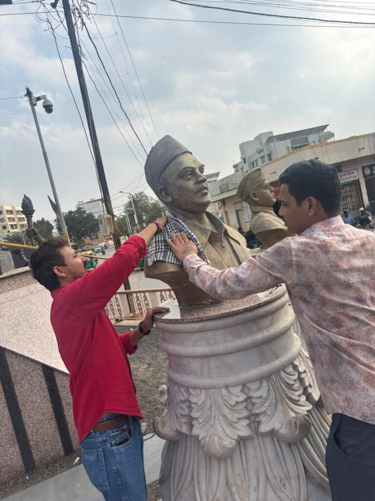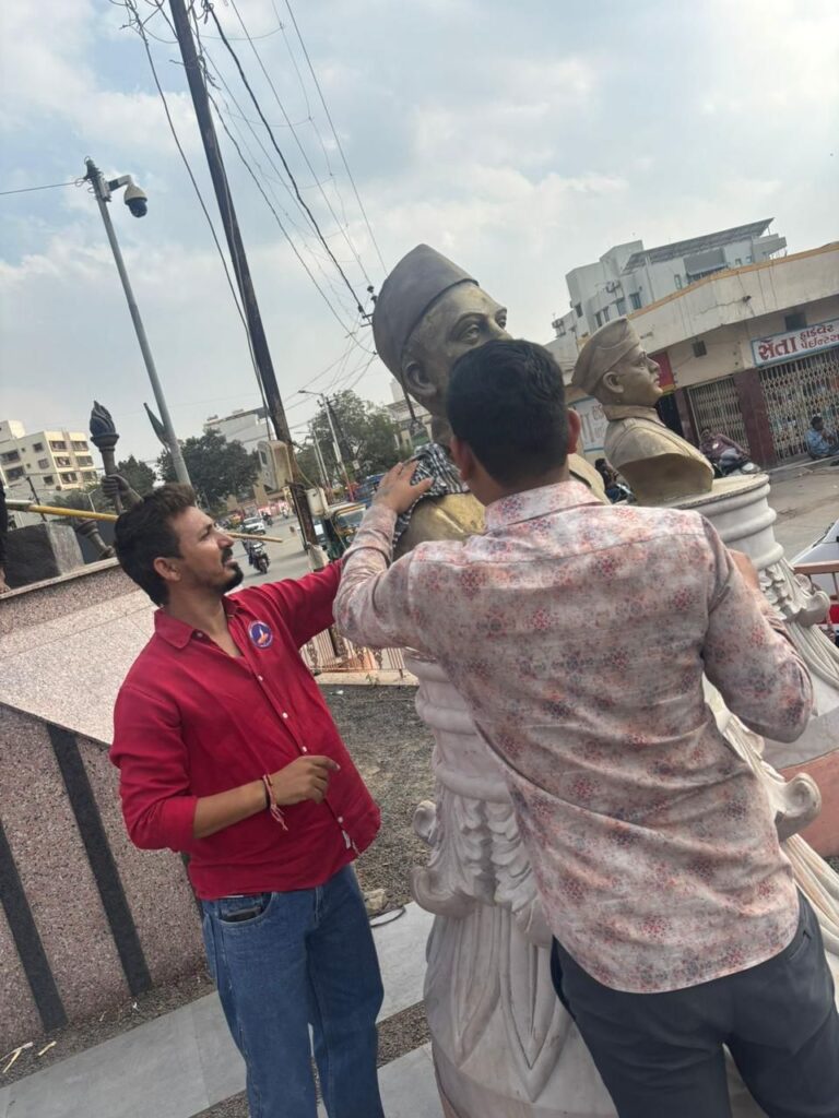 મહાપુરુષોના જન્મદિન કે નિર્વાણદિન પૂરતું સ્મરણ સીમિત રાખવાથી આ પવિત્ર પ્રતિમાઓની હાલત દયનીય બની છે. આવી સ્થિતિમાં, ક્રાંતિકારી વિચારધારા અને સર્વધર્મ સમભાવનો સંદેશ જનજન સુધી પહોંચાડતા યંગ ઇન્ડિયા ગ્રુપના મેન્ટોર ડો. દેવેન રબારીના માર્ગદર્શન હેઠળ, સમગ્ર યુવા ટીમે થર્ટી ફર્સ્ટ અને નવા વર્ષની અનોખી ઉજવણીના ભાગરૂપે શહેરની વિવિધ જગ્યાએ આવેલી તમામ રાષ્ટ્રપ્રેમીઓની પ્રતિમાઓને જળાભિષેક કરીને સ્વચ્છ કરી, યોગ્ય રીતે સફાઈ કરી તેમજ પ્રતિમાઓની આસપાસની ગંદકી દૂર કરવાનો ભગીરથ પ્રયાસ હાથ ધર્યો હતો.