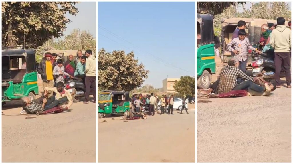 મોરબીના ભડીયાદ રોડ પર દારૂબંધીના કાયદાના લીરેલીરા ઉડાવતી એક ઘટના સામે આવી છે. જેમાં બે શખ્સો દારૂ પીધેલી હાલતમાં જાહેરમાં બાખડતા જોવા મળ્યા હતા. નશામાં ધૂત આ બંને શખ્સોએ રસ્તા વચ્ચે એકબીજા સાથે હાથાપાઈ કરી, ગાળો ભાંડી ભયનું વાતાવરણ ઉભું કર્યું હતું. ધોળા દિવસે જાહેરમાં ચાલી રહેલા આ હાઈવોલ્ટેજ ડ્રામાને જોવા માટે લોકોના ટોળા એકઠા થયા હતા. સ્થાનિકોમાં આ દ્રશ્યો જોઈ ભારે રોષ જોવા મળ્યો હતો. તેમજ યોગ્ય કાર્યવાહી કરવા માંગ ઉઠી છે.