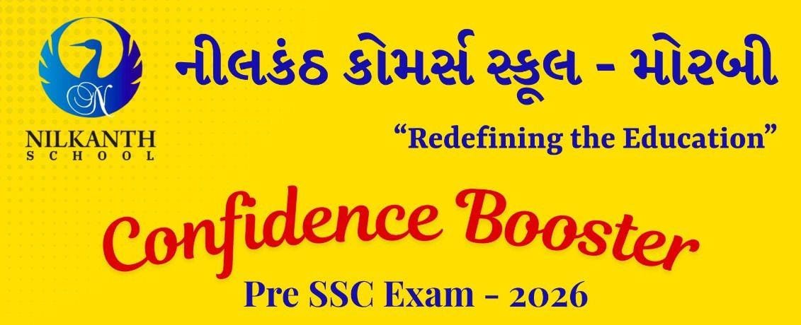 વિદ્યાર્થીઓની મહેનત ને બિરદાવવા અને તેમના આત્મવિશ્વાસ માં વધારો થાય તથા બોર્ડની પરીક્ષાનો ડર(ભય)દૂર થાય તેવા ઉમદા હેતુ થી નીલકંઠ સ્કૂલ દ્વારા તા.01/02/2026, રવિવાર ના રોજ મોરબી ની તમામ સ્કૂલ અને કલાસીસના ધો-10 ના વિદ્યાર્થીઓ માટે MCQ ટેસ્ટ નું આયોજન કરવામાં આવેલ છે. જેમાં ટોપ 20 નંબર મેળવનાર વિદ્યાર્થીઓને અમૂલ્ય ઈનામ આપી સન્માનીત કરવામાં આવશે.