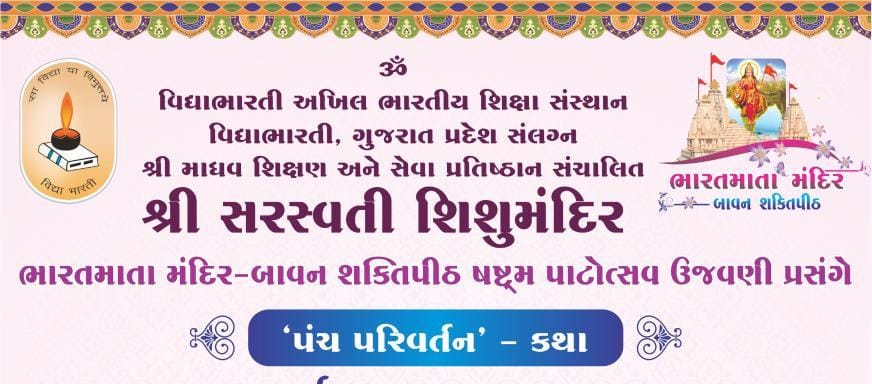 મોરબી : મોરબીનું સરસ્વતી શિશુ મંદિર 1992 થી શિક્ષણમાં કામ કરી રહ્યું છે. છ વર્ષ પહેલાં શાળા પરિસરમાં ભારત માતા મંદિર તથા બાવન શક્તિપીઠ પ્રાણ પ્રતિષ્ઠા તથા સ્થાપન નો કાર્યક્રમ ખૂબ ધામધૂમથી કરેલ. ત્યારથી લઈને દર વર્ષે મહાસુદ આઠમના દિવસે પાટોત્સવ નિમિત્તે વિવિધ કાર્યક્રમોનું આયોજન થતું હોય છે. આ વર્ષે તિથિ મુજબ 26 જાન્યુઆરીએ ધ્વજવંદન ત્યારબાદ પાટોત્સવ ની પૂજા વિધિ થશે. રાષ્ટ્રીય સ્વયંસેવક સંઘની પ્રેરણાથી ચાલતું આ વિદ્યાલય પાટોત્સવ નિમિત્તે દિનાંક 25 જાન્યુઆરી અને રવિવારે રાત્રે 9:00 વાગે એક સુંદર કાર્યક્રમનું આયોજન થયું છે.